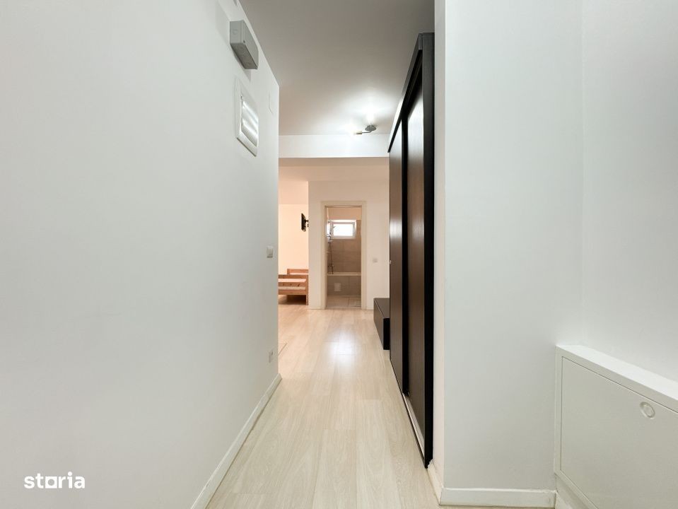 Garsoniera este situată la parterul unui imobil din LaRa Condominium Otopeni, un ansamblu rezidențial modern, cu acces securizat prin barieră, supraveghere video în toate spațiile comune și grădină amenajată pentru rezidenți. Accesul către DN1 este rapid și direct, prin strada 1 Mai, ceea ce face legătura cu orașul extrem de ușoară. Cu o suprafață utilă totală de 47.76 mp, din care balconul ocupa 4,68 mp, locuința beneficiază de centrală termică proprie și încălzire prin pardoseală, asigurând confort termic ridicat și eficiență energetică. Bucătăria open-space este complet utilată cu cuptor, hotă și frigider, având mobilier proiectat pentru eficiență și utilizare ușoară. Pretul afisat include mobilierul si electrocasnicele din bucatarie. Interesant este și faptul ca bucataria permite, inca din proiectare, sa fie inchisă. Baia este dotată cu cada, ventilație naturală prin fereastră și finisaje contemporane, în nuanțe neutre. Holul este generos, cu un spatiu de depozitare, ideal pentru organizare eficientă și acces rapid la lucrurile de zi cu zi. Balconul are acces direct și din bucătărie, ceea ce adaugă un plus de funcționalitate în viața de zi cu zi. Locul de parcare este situat în imediata vecinătate a balconului, un detaliu practic care permite accesul rapid în imobil. Prețul locului de parcare este de 5000 Euro și nu este inclus în prețul de listing. O locuință compactă, eficient amenajată și bine poziționată într-un ansamblu liniștit și sigur. Sună pentru a programa o vizionare!