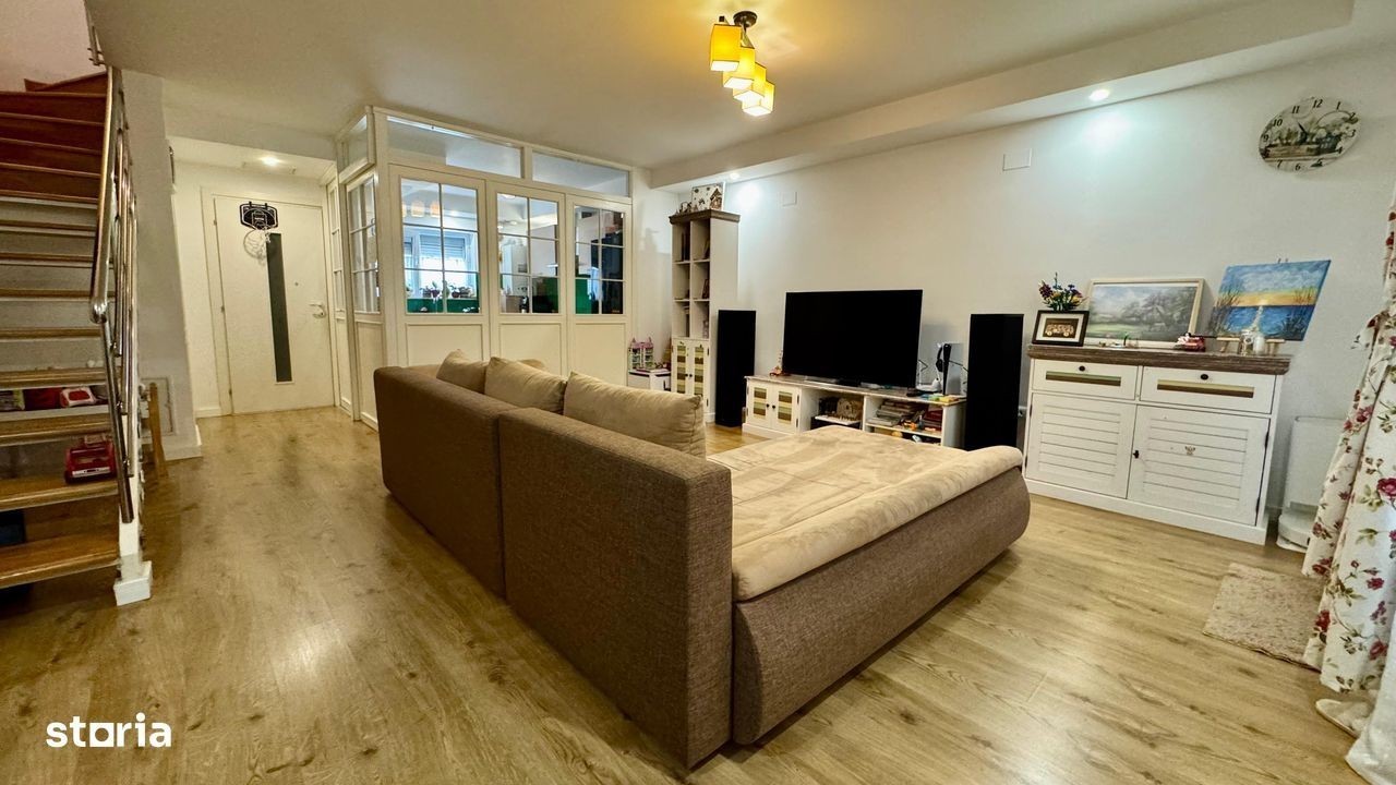 Va propunem spre vanzare o vila P+1, cu 3 camere, de tip N, in Complexul Rezidential Cosmopolis. Constructia este din caramida porotherm de 30 cm si izolatie de 10 cm. Vila, finalizata in anul 2015, are centrala proprie si incalzire in pardoseala.