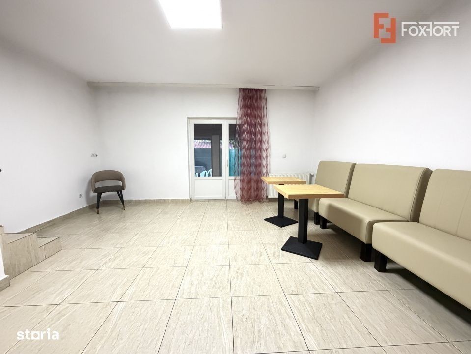 Duplex cu 3 camere de inchiriat in localitatea Dumbravita. FOXFORT propune spre inchiriere o casa de tip duplex, cu un regim de inaltime Parter + 1 Etaj. Este situata in Dumbravita, zona Lidl si are un numar de 3 camere, cu o suprafata utila de 100 mp si teren 100 mp. Anul constructiei este 2010, structura beton, material zidarie caramida. Imobilul dispune de urmatoarele utilitati: curent electric, apa, canalizare, gaz, catv, telefon, acces internet, fibra optica. Puncte de interes: farmacii, centre comerciale, salon infrumusetare, supermarket, scoli, gradinite, mijloc de transport in comun, cafenele, restaurante. Compartimentarea este dispusa dupa cum urmeaza: - Parter: hol, living, baie, bucatarie, debara, terasa; - Etaj: hol, 2 dormitoare, baie, dressing, balcon; Finisajele interioare sunt moderne: - Usa intrare: metal; - Usi interioare: celulare, lemn; - Tamplarie ferestre: pvc, termopan; - Podele: parchet, gresie. Casa este nemobilata si se va mobila la cerere. Pe partea de electrocasnice avem urmatoarele: cuptor, hota, aragaz, frigider cu congelator, masina de spalat rufe, 3 TV-uri. Imobilul dispune de centrala proprie prin calorifere si 2 locuri de parcare. Pretul este de 600€ - COMISION 0% Se accepta ca si modalitate de plata surse proprii. Indicator performanta energetica: Clasa A ID intern: C8440