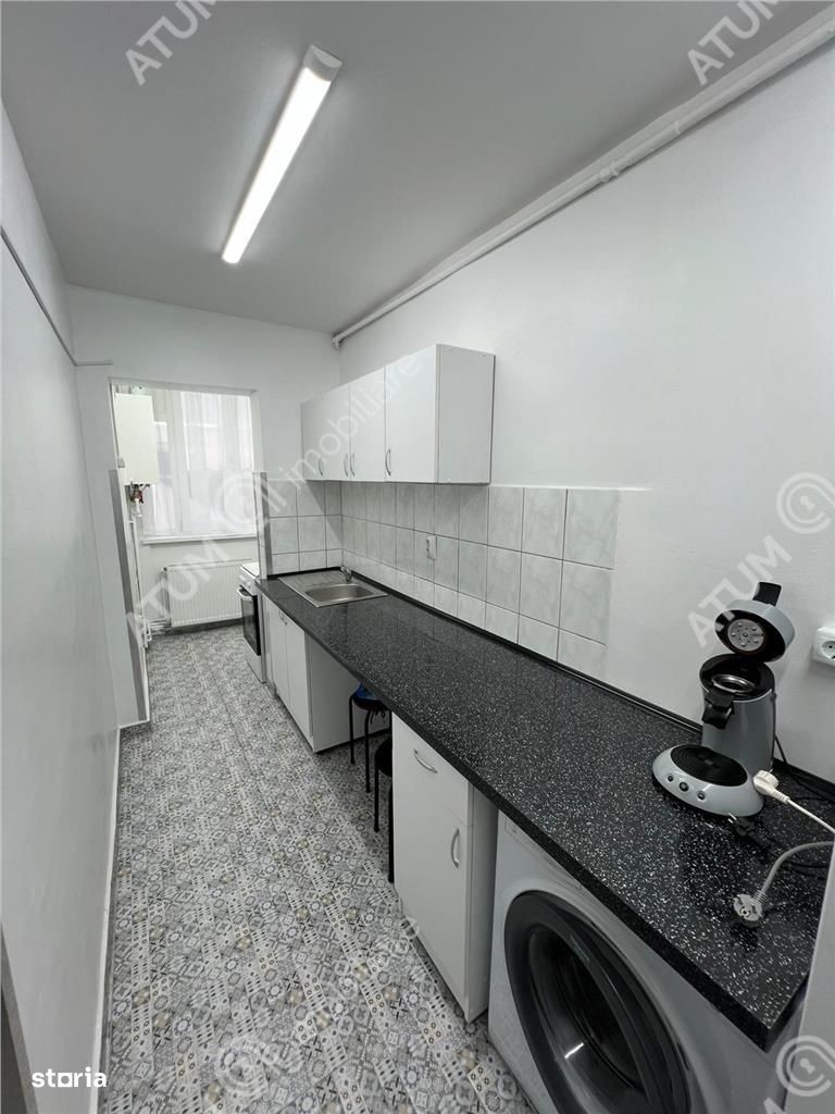 Atum Imobiliare va ofera spre inchiriere o garsoniera decomandata si renovata in 2025, cu suprafata totala de 33 mp, complet mobilata si utilata in zona Strand 1 din Sibiu. Imobilul in care este amplasata locuinta a fost edificat in 1985, este pe structura de beton, are acoperis din tigla si a beneficiat de renovare in timpul careia imobilul a fost anvelopat termic cu polistiren. Garsoniera a fost recent renovata si dotata cu electrocasnice noi, precum: TV, frigider, masina de spalat rufe, cafetiera, aragaz. De asemenea, finisajele sunt moderne si constau in tamplaria PVC cu geam termopan, usa de la intrare, centrala termica si caloriferele, parchetul laminat, usi interioare, zugraveli in vopsea lavabila alba. Locuinta masoara 27 mp utili, este bine compartimentata si este alcatuita dintr-un hol de acces, livingul spatios, bucataria complet utilata si baie dotata cu cada si geam de aerisire. Orientarea vestica ofera un flux de lumina naturala ce poate influenta si costuri mai reduse la intretinere. Din punct de vedere al locatiei, imobilul este amplasat intr-o zona ce ofera acces rapid spre magazine, statii de transport in comun, spatii verzi, scoli si gradinite, parcul Sub Arini si alte facilitati utile. Valoarea de inchiriere este de 300 euro luna+ garantie. ID intern: 3102.