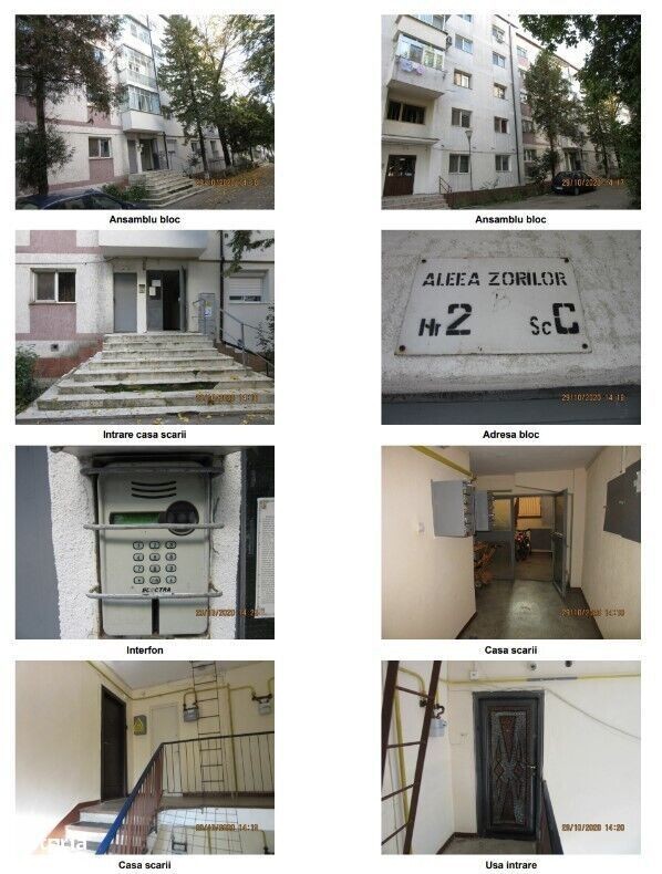 Apartamentul este de tip 3 camere si dependinte, decomandat si este compartimentat astfel: hol, bucatarie, camera de zi, baie, doua dormitoare si balcon. Finisajele sunt de tip medii, si constau in pardoseli de gresie si parchet laminat, peretii sunt finisati cu zugraveli lavabile pe suport de glet, la baie si bucatarie exista placari ceramice cu faianta, in camera de zi zugravelile tamplaria exterioara este din PVC cu geam termopan, cu exceptie la camera de zi la care usa este din lemn vopsit. Usa de la intrare este metalica Detalii compartimentare spatiu: actual Aleea Zorilor nr. 2, sc. C, et. IV, ap. 9