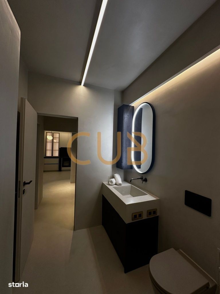 CUB Imobiliare vă propune spre vânzare un apartament deosebit cu 2 camere la etajul al 2-lea al unui bloc cu 3 nivele, finalizat în 2011 situat în zona Girocului. Cu o amenajare inteligentă a spațiului, acest apartament oferă: un living luminos, o bucătărie modernă complet utilată și echipată, un dormitor confortabil cu dressing, un hol, o baie elegantă și două balcoane franțuzești. Fiecare detaliu a fost gândit cu atenție pentru a vă asigura confortul și funcționalitatea în fiecare zi. Compartimentare: - 1x dormitor cu dressing și un balcon franțuzesc - 1x living open space cu un balcon franțuzesc - 1x bucătărie open space - 1x hol cu spații de depozitare - 1x baie finisată integral cu microciment (cadă și cabină de duș îmbrăcate în același material) și mobilier Antonio Lupi Caracteristici: - Design interior realizat de un designer profesionist, într-un stil modern - Mobilier complet executat la comandă și amenajări de lux, pentru un confort sporit în fiecare colț al locuinței - Imobilul a beneficiat de îmbunătățiri în valoare de 85.000 EUR Dotări și facilități: - Bucătărie complet utilată (electrocasnice marca Miele); - Microciment de la Tempini pe suprafețele din hol si baie (podele, pereți, cabină); - Draperii și perdele acționate electric de la Evoconcept; - Usile Caruvi Mobili (Fillomuro) - Seif incastrat în perete; - Sistem de alarma si camere de supraveghere în apartament; - Mocheta premium de la Evoconcept; - Centrală proprie pe gaz; - Sistem de încălzire prin calorifere și climatizare care asigură o temperatură optimă în orice moment al anului; - 1 loc de parcare inclus în CF și în pret Pret: 145.000 EUR + Onorariul agentiei