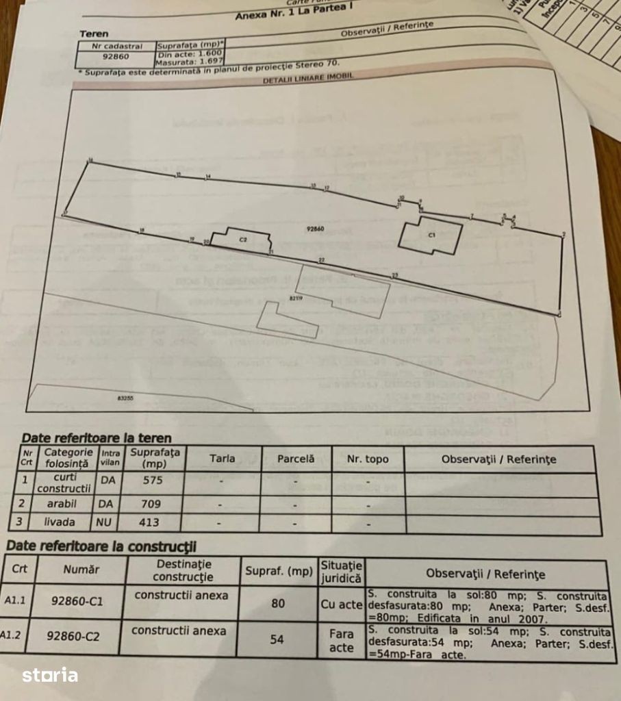 Agentie Imobiliara va propune spre vanzare proprietate de 1697 mp. teren cu doua anexe constuite una de 80 mp., constructie BCA din anul 2007 si una de 54 mp. de lemn stil cabana. Zona este foarte linistita oferind foarte multa intimitate, dispune de fosa septica dar si canalizare cu posibilitate de racordare de la strada, centrala electrica in casa si posibilitatea de racordare la reteaua de gaz de la baza proprietatii, electricitate.