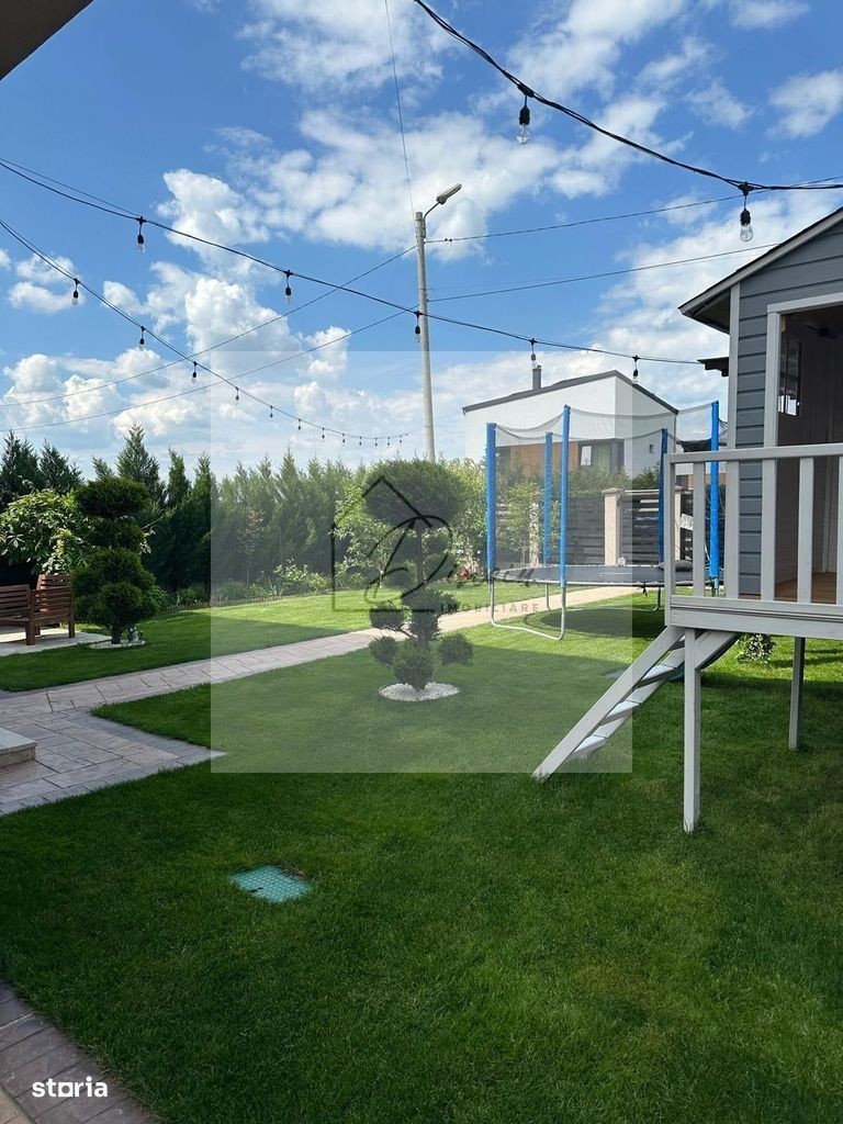 Va ofer spre vanzare individuala cu 4 camere, P+1E+M, in Tunari, langa padure (50m pana la padure), intr-o zona moderna premium aproape de centrul localitatii, de Parcul Central, intr-o zona rezidentiala deosebita, cu multa liniste si verdeata, locatie ideala pentru un stil de viață liniștit, relaxat si confortabil. Concept oras in 15 min! Langa Pescariu Sports & Spa! Mod de viata exclusivist aproape de natura si acces facil catre oras! Comunitate moderna si selecta! Disponibilitate imediata! Gata de mutare! Complet mobilata si utilata! Toate utilitatile (apă, canalizare, gaze, electricitate, internet)! Plata credit sau surse proprii! Vila a fost finalizata in 2021, fiind construita pe P+1E+M, pe un teren de 400 mp, cu suprafata utila totala de 140 mp, cu o compartimentare moderna si eficienta, dupa cum urmeaza: CURTE: de 320 mp; complet amenajata cu gazon, alei pavate și spațiu verde generos; vegetatie matura - terasă acoperită, perfectă pentru relaxare în aer liber cu vedere fix la padure PARTER: zona de zi - suprafata utila de 63mp - hol de 8 mp + camara de 3 mp - living de 28,5 mp cu zona de relaxare si zona de dining; semineu - bucatarie inchisa de 12,6 mp complet echipata cu electrocasnice premium - camera tehnica de 2,2 mp - baie de 3 mp, cu fereastra - ideal pentru aerisire naturala ? - terasa inchisa cu vedere la padure ETAJ: zona de noapte - suprafata utila de 68 mp - hol de 5,3 mp - dormitor matrimonial de 17 mp + baie proprie de 4,2 mp (cu fereastra - ideal pentru aerisire naturala) + balcon de 5 mp - intimitate deplina - 2 dormitoare secundare de 16 mp si 13 mp - baie secundara de 4,2 mp cu fereastra - ideal pentru aerisire naturala MANSARDA: spatoi de depozitare; hobby room, sport Facilitati, dotari si finisaje: Premium - complet mobilată și utilată, cu finisaje și mobilier de înaltă calitate; spatii de depozitare multiple - incălzire in pardoseala; centrala proprie performantă; panouri solare, pentru un plus de eficiență energetică - pozitionare excelenta langa padure - la 50m; infrastructura completa (drum asfaltat) Facilitati locatie: orasul in 15 min - acces rapid mijloace de transport, magazine, școli și grădinițe îde stat si private - acces rapid la zona centrala a localitatii (parc central, primarie, politie, gradinita, scoala generala) - mijloace de transport: STV (459 si 449, conectare cu metrou) si STB 301 - la 10 min de Pipera, 15 min aeroport Otopeni Henri Coanda, 10 min Baneasa Shopping City Va invit sa programati o vizionare! Alina Dinoiu