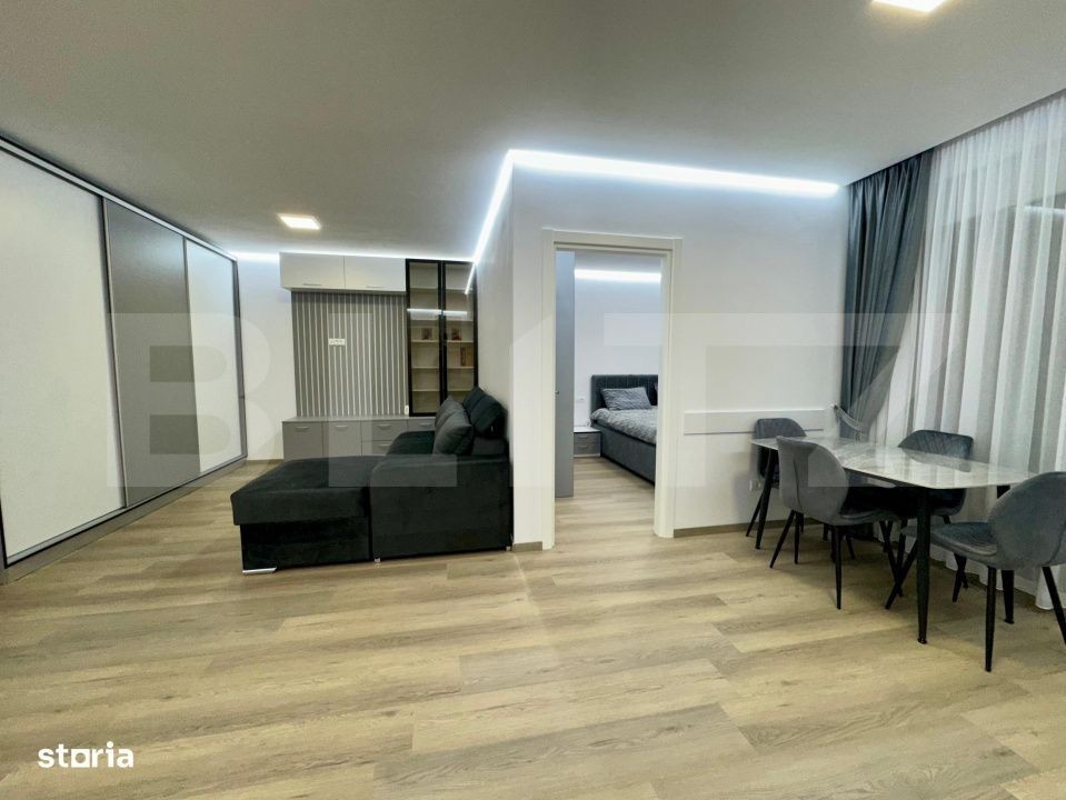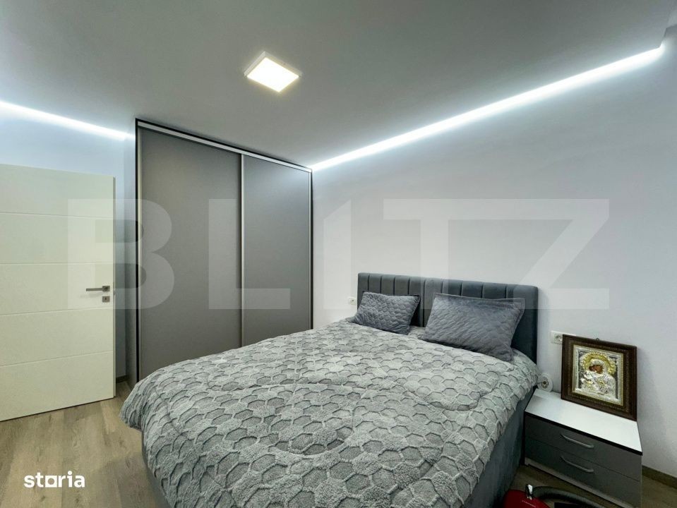 Blitz vă propune spre vânzare un apartament modern cu 2 camere, decomandat, situat în ansamblul rezidențial West Residence, unul dintre cele mai noi și apreciate proiecte din zona de Vest a orașului. Localizat la etajul 1, cu orientare spre Vest, apartamentul oferă lumină naturală pe tot parcursul după-amiezii și un nivel ridicat de confort termic și fonic. Suprafața utilă este de 58.83 mp, excelent compartimentată. Holul de 2.62 mp oferă acces direct în livingul spațios de 30.23 mp, un spațiu luminos și primitor. Bucătăria este separată, având 5.90 mp, complet mobilată și utilată. Dormitorul măsoară 12 mp, este bine delimitat de zona de zi și oferă suficient spațiu pentru confortul personal. Baia are 4.44 mp, iar imediat după aceasta se află spațiul tip logie de 3.64 mp, amenajat inteligent cu mașină de spălat-uscat (2 în 1) și rafturi pentru depozitare, devenind o zonă tehnică extrem de utilă în locuință. Locuința se vinde complet mobilată și utilată, cu mobilier și electrocasnice de cea mai înaltă calitate, pregătită pentru mutare imediată. Toate geamurile sunt echipate cu rulouri din aluminiu, un mare plus pentru intimitate, umbrire și eficiență energetică. În ceea ce privește siguranța, apartamentul dispune de detector de fum și detector de apă, iar blocul este prevăzut cu buncăr pentru situații de urgență - o caracteristică rar întâlnită în proiectele noi. Pe lângă suprafața apartamentului, se pot achiziționa separat: Boxă la subsol - 6000 EUR Loc de parcare - 8000 EUR West Residence este cunoscut pentru calitatea construcției, izolația superioară cu vată bazaltică, zonele verzi și comunitatea liniștită, precum și accesul facil la supermarketuri, stații de transport, școli și zona comercială din proximitate. O locuință premium, perfectă pentru locuire sau investiție, într-o zonă în continuă dezvoltare. Hai cu mine la o vizionare!