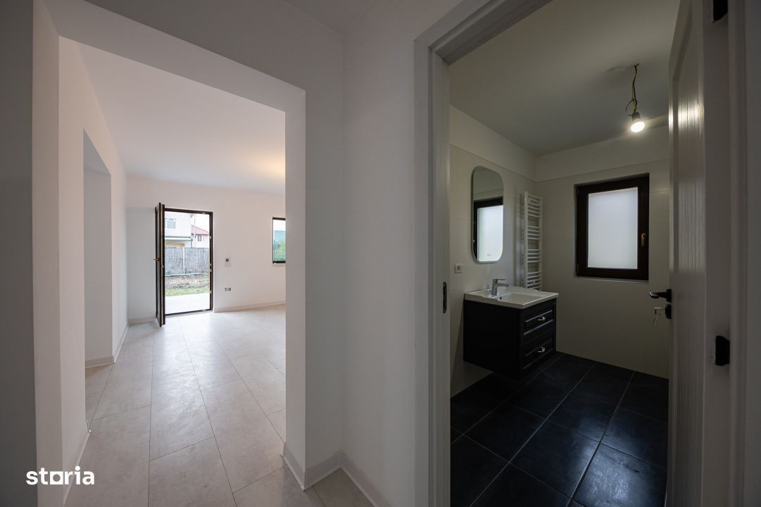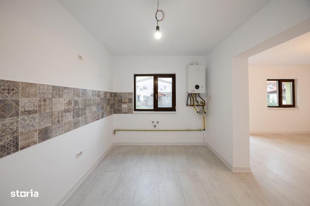 Iti prezint o casa tip duplex, cu 5 camere, care iti ofera spatiu, lumina si un stil de viata confortabil. Ai 107.5 mp utili si un teren de 318 mp, suficient pentru joaca, relaxare si o viata linistita. Esti pe strada Ferencz Lehart din Dumbravita, pe asfalt, intr-o zona atractiva, aproape de tot ce folosesti zi de zi. Ajungi rapid la Profi, Gradinita sau Scoala din Dumbravita, Parcul Central sau Primaria Dumbravita. Pana in centrul Timisoarei faci 15-20 de minute cu masina. O solutie buna pentru tine si familia ta. Caracteristici: -Suprafata utila 107.5 mp -Teren 318 mp -Terasa 13.9 mp -Balcon 4.9 mp -Pod pentru depozitare Parterul iti ofera living cu dining, bucatarie ce poate fi separata, un birou util sau dormitor, hol de acces si baie cu dus. Etajul are trei dormitoare o,baie cu cada si bideu si un balcon potrivit pentru aer curat. Din dormitorul matrimonial exsta acces in pod, un spatiu perfect pentru depozitare. Ai utilitati complete. Izolatia exterioara de 10 cm si tamplaria de calitate sustin confortul termic. Ai centrala Bosch, incalzire in pardoseala pe ambele niveluri, scari placate cu piatra naturala, sistem video exterior, poarta auto electrica si doua locuri de parcare. Curtea din fata este pavata, iar in spate este pregatita pentru amenajarea unei zone verzi, cu foisor, cu apa si curent trase. Pret 230000 EUR - Comision 0% pentru cumparator Casa este o optiune buna daca vrei un duplex cu 5 camere in Dumbravita, la un pret atractiv. Ai spatiu, confort si conditii bune ca sa o mobilezi si sa te muti rapid. Pentru alte detalii sau programarea unei vizionari: Teona Lupulescu -