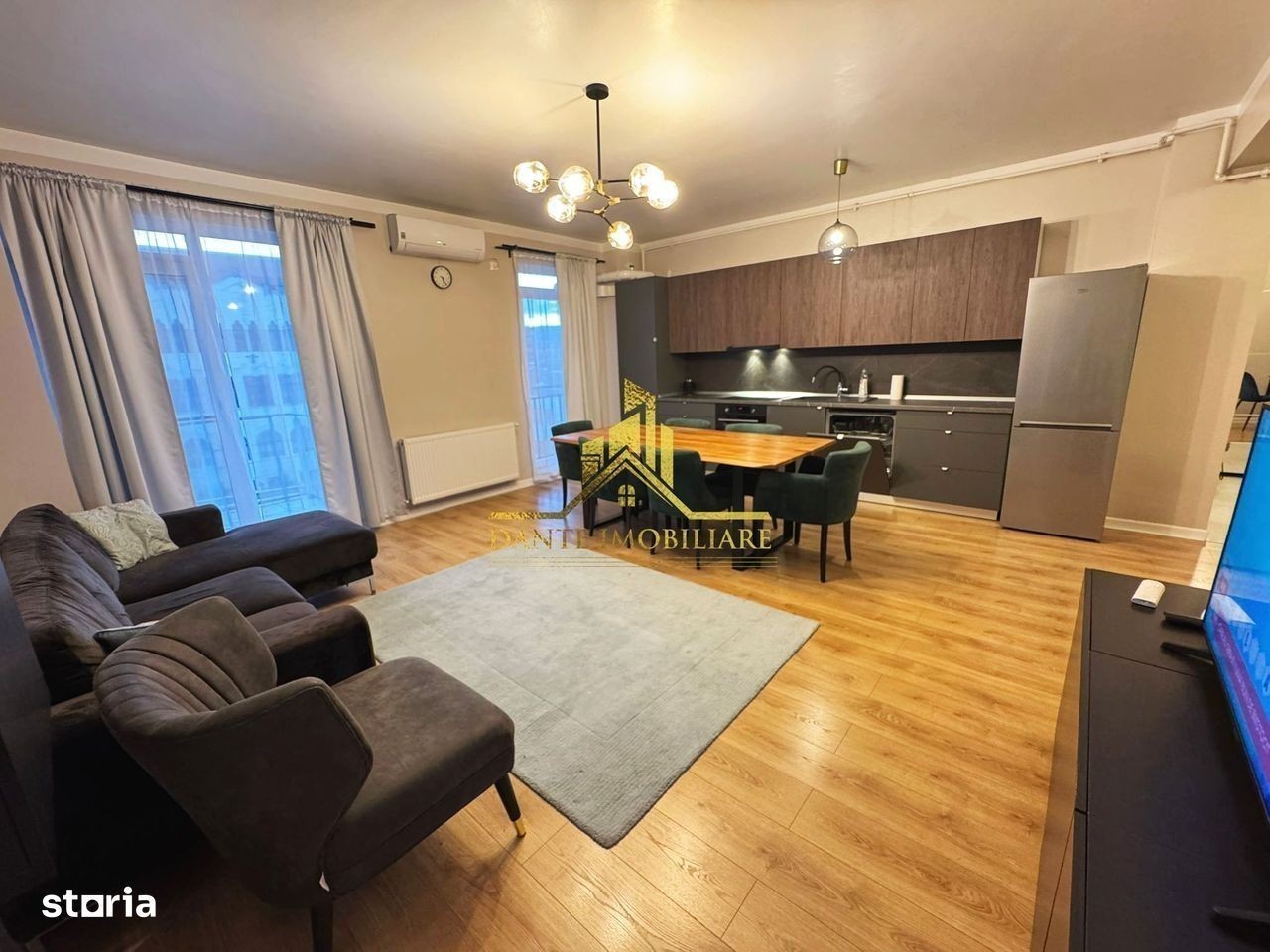 DANTE Imobiliare va propune spre inchiriere un apartament cu 3 camere, semidecomandat, avand o suprafata de 90 mp + 2 balcoane, mobilat premium, situat in Marasti, pe str. Traian aproape de statia de autobuz si Piata Mihai Viteazul. Apartamentul este situat la etajul 3 din 7, iar compartimentarea este urmatoarea: - living open space cu coltar, spatii de depozitare, aer conditionat, TV si zona de dining - bucataria complet utilata, fiind dotata cu plita, cuptor electric, hota, frigider si masina de spalat vase - dormitor cu pat matrimonial si dressing - dormitor cu un coltar extensibil si dulap pentru haine - baie cu cada si masina de spalat rufe - baie cu cabina de dus In pretul afisat sunt incluse 2 locuri de parcare subterane! Pentru vizionari sau alte informatii va stam la dispozitie