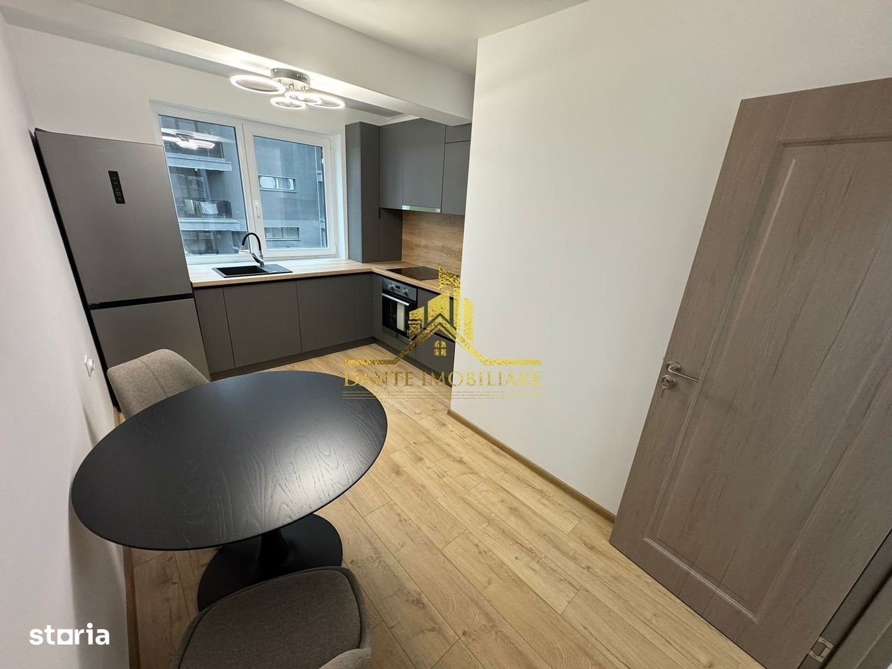 DANTE Imobiliare va propune spre inchiriere un apartament cu 1 camera, fiind la PRIMA INCHIRIERE, ultrafinisat, mobilat modern, avand o suprafata 42 mp + balcon, intr-un bloc nou, izolat. Apartamentul este situat in cartierul Gheorgheni, langa Baza Sportiva,mai exact pe strada Soporului, aproape de magazine, statia de autobuz si Iulius Mall. Apartamentul este situat la etajul 2 din 8, are centrala termica proprie, iar compartimentarea este urmatoarea: - camera cu canapea extensibila,comoda, pat matrimonial,dulap pentru haine - bucataria complet mobilata si utilata, fiind dotata cu plita, cuptor electric, hota, frigider si loc de luat masa - baie cu cada -balcon In pretul afisat este inclus un loc de parcare subteran! Pentru vizionari sau alte informatii va stam la dispozitie!