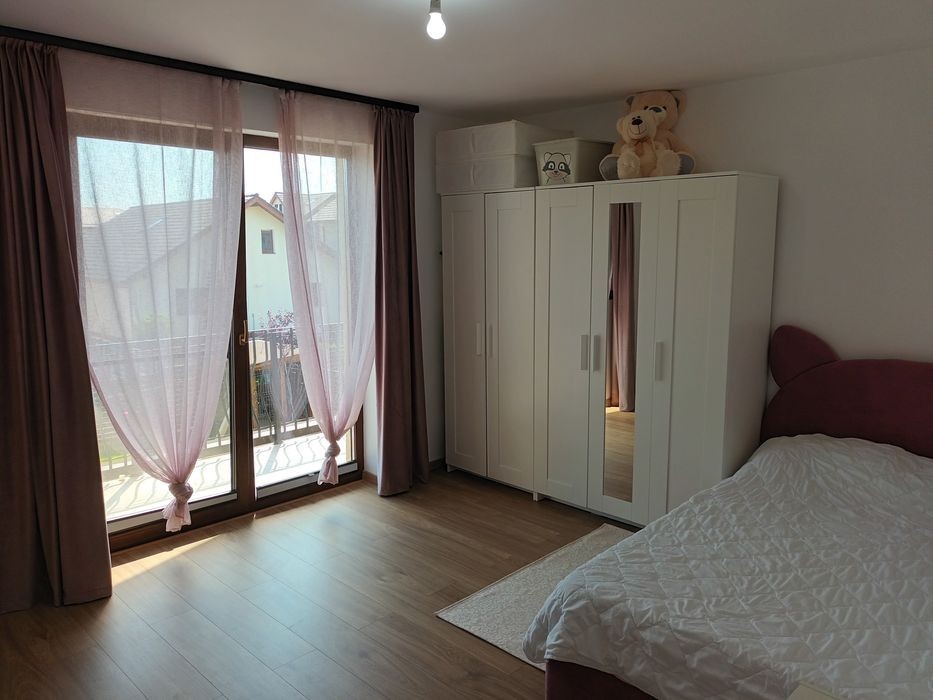 Proprietar vand casa in cartierul Izvor, la doar 3 km de centura Brașovului - o zonă liniștită, dar aproape de oraș E o casă construită cu grijă și gândită pentru confort, finalizată în 2024, așa că totul este nou și pregătit pentru o familie care vrea să se mute fără bătăi de cap. Casa are 125 mp utili (plus terasă invhisa si una deschisa și 2 balcoane), pe un teren de 500 mp, cu orientare est-sud-vest - adică lumină frumoasă toată ziua. La parter sunt: un living generos (26 mp), o bucătărie mare (20 mp) mobilata cămară, baie și un dormitor de 10 mp - perfect ca birou, cameră de oaspeți sau pentru cineva care nu vrea scări. La etaj sunt 3 dormitoare (14.5, 15 și 17 mp), două băi și două balcoane. Avem încălzire în pardoseală pe ambele nivele, cu distribuitor separat, geamuri cu 6 camere și 3 foi de sticlă, izolație exterioară cu polistiren, iar casa e racordată la toate utilitățile (apă, gaz, curent, internet și fosă septică). Curtea este amenajată cu gazon rulou, plante decorative, sistem de irigare automatizat, robot de tins,pavaj și loc de parcare pentru 3 mașini. Avem și poartă auto culisantă. Zona verde liberă are aproximativ 300 mp, perfectă pentru grădinărit sau joacă. La 100 m ai magazin și stație de autobuz. Dacă îți dorești o casă gata de locuit, într-o zonă liniștită dar aproape de oraș, poate fi exact ce cauți.