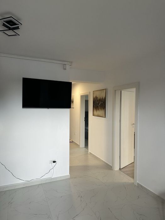 Apartament 3 camere, 2 dormitoare, baie, leaving open space, balcon 59 mp utili. Apartamentul este mobilat și utilat integral ! 2 Tv, mașina de spălat, mașina de spălat vase, frigider, cuptor și plită, cuptor cu microunde, 2 Ac, aspirator!
