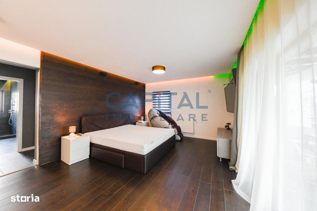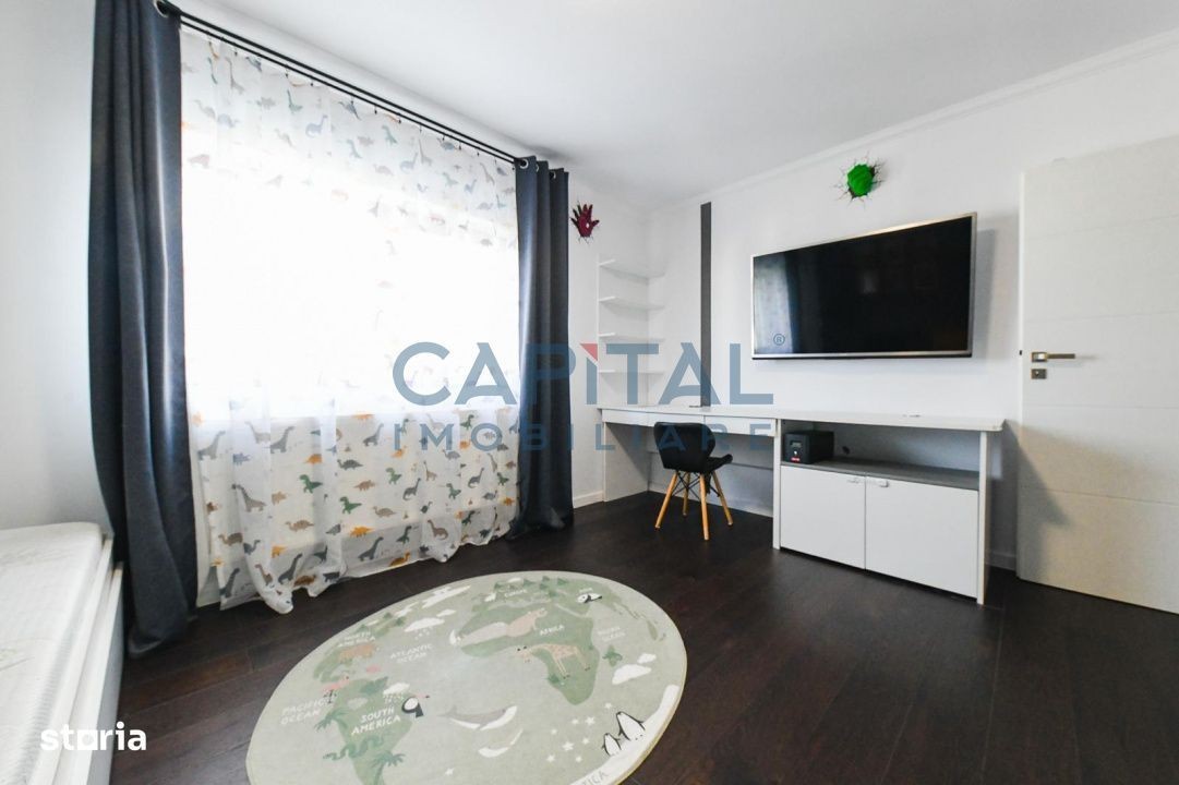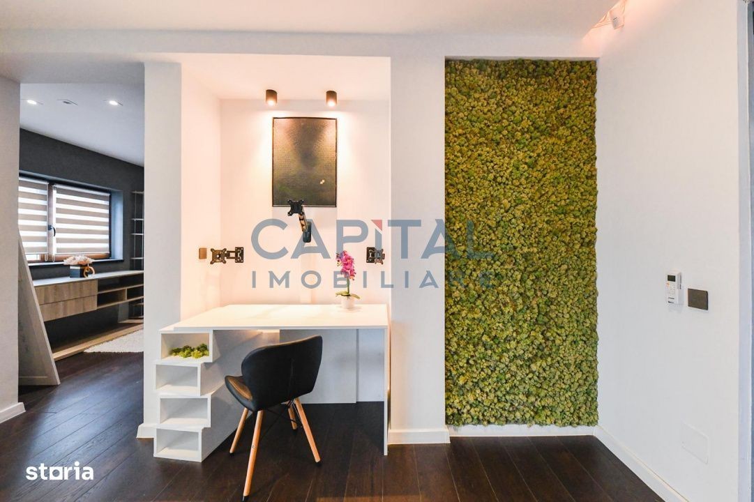 Capital Imobiliare vă propune spre vânzare un apartament spațios și luminos situat la etajul 1 al unui imobil modern cu doar 6 apartamente, finalizat în 2018, parte dintr-un complex rezidențial cu standarde ridicate si acces catre gradina comuna inchisa, amenajta ca spatiu de relaxare si loc de joaca pentru copii. Clădirea dispune de lift și parcari subterane. Suprafață utilă: 106,32 mp Terasa 17,4mp, balcon 4,43 mp. PRIVELISTE ASUPRA ORASULUI. COMPARTIMENTARE: Hol, baie 5mp Bucătărie open-space cu living peste 40mp cu zonă de zi luminoasă și primitoare cu iesire pe balconul amenajat cu gazon artificial Dormitor matrimonial, 22mp, cu baie proprie -6,65mp dotata cu echipamente Grohe, Kludi, Geberit, incalzire in pardoseala, 2 chiuvete, dressing 9,2, birou și acces la terasă Al doilea dormitor 15,56mp, orientare estica, dotat cu lumini ambientale si birou DOTARI SI FINISAJE: Centrală termică proprie,aer conditionat smart, camerele dispun de lumini ambientale, finisaje moderne si de calitate, electrocasnice moderne achizitionate anul acesta, 1 loc de parcare in garajul subteran. dotat cu siguranta separata si prize industriale pentru incarcarea masinilor electrice. ZONA deosebit de căutată, aproape de puncte de interes, magazine, școli și spații verzi. FARA COMISION PENTRU CUMPARATOR!