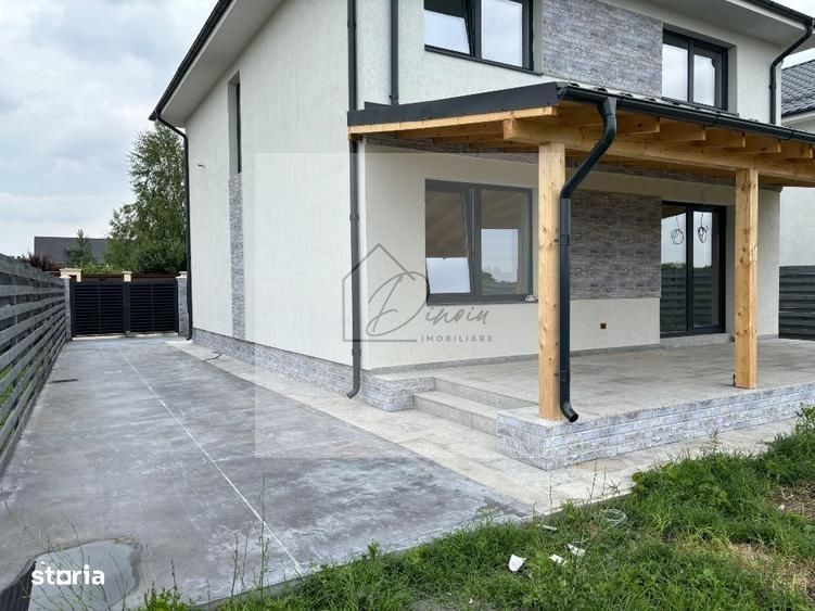 Va propun spre vanzare vila cu 5 camere si gradina generoasa in Corbeanca la 150 m de Paradisul Verde, intr-o zona verde si linistita, departe de zgomotul, agitatia si poluarea din oras. Disponibilitate imediata! Ideal familie care doreste confort, intimitate si acces rapid si facil la facilitati! Se vinde la cheie, asa cum este prezentata in poze! Pretul este de 385.000 euro. Vila este spatioasa si luminoasa, cu suprafata construita in 2024 cu suprafata utila de 171 mp (146 mp + terasa de 25mp), teren de 627 mp cu gradina mare, cu o compartimentare moderna si eficienta, dupa cum urmeaza: CURTE de 520 mp, cu gazon PARCARE: 3 locuri de parcare PARTER: zona de zi - suprafata utila de 70 mp + terasa acoperita de 25 mp - hol intrare de 6,3 mp - living generos de 29 mp, cu zona de relaxare si zona de dining - bucatarie generoasa de 11 mp, deschisa (se poate inchide) - dormitor /birou de 11,4 mp - 1 baie spatioasa de 7,2 mp - cu fereastra - ideal pentru aerisire naturala - terasa acoperita de 25 mp, cu acces din living ETAJ: zona de noapte - suprafata utila de 76 mp - hol - 1 dormitor matrimonial de 15,5 mp + dresing de 7,7 mp + baie proprie de 6,6 mp + bacon de 4,4mp; intimitate totala - 2 dormitoare secundare (de 14 mp si 12 mp) deservite de 1 baie secundara de 7 mp POD: peste etaj exista placa de beton turnata; podul pe mijloc are inaltimea de 2,35ml; Ideal zona hobby, birou, etc Utilitati: iluminat public, strada cu asfalt; bransata apa, canalizare, la gaz, curent electric, trifazic putere instalata 30kw, prevazuta pt montare panouri solare, pompa de caldura; priza & incarcare masina electrica, circuitele fiind trase (trebuiesc doar montate). Dotari si finisaje Premium: - construita pe cadre de baton armat, fundatie 1,20m; caramida poroterm Robust 25 - inclusiv pereti interiori - acoperis cu Tabla Lindab - tamplarie tripan Salamander BLUEVOLUCION 92 CU STICLA DE 52, LOEW 4 anotimpuri - circuite separata de curent pt panouri solare, pompa de caldura si masina electrica - incalzire in pardoseala premium TECE; centrala pe gaz marca Vaillant - gard din lemn; partea din fata stalpi + soclu din beton armat iar partea de sus din panouri de fier - toate baile au fereastra si sunt complet mobilate si echipate Facilitati locatie: la 150 mp de Paradisul Verde Va invit sa ma contactati pentru mai mu;te detalii si pentru a programa o vizionare! Alina Dinoiu Pentru mai multe oferte, va invit aici: dinoiuimobiliare.ro