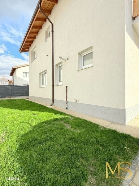 Ansamblul Liziera Brasov ofera vile tip duplex sau case individuale cu 3 camere, 2 bai, terasa si curte de aproximativ 150 mp. Casa disponibila pentru inchiriere este duplex si este finalizata in 2024. Caracteristici: La parter regasim zona de living open space cu bucataria complet mobilata si utilata: cuptor electric, plita cu inductie, combina frigorifica, masina de spalat vase si hota, o baie moderna cu ventilatie naturala si un spatiu de depozitare amenajat sub scarile interioare. Etaj: La etaj este amenajata zona de noapte cu 2 dormitoare, dormitorul matrimonial mobilat si cu iesire pe balcon, Dormitorul secundar si o baie amenajata cu walk-in shower. Dotari si finisaje: - Centrala termica proprie - Tamplarie PVC cu geam termoizolant - Izolatie termica eficienta - Curte privata cu acces auto si alee pavata Locuinta este la prima inchiriere, in acest moment se pun la punct ultimile detalii.
