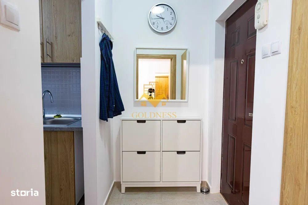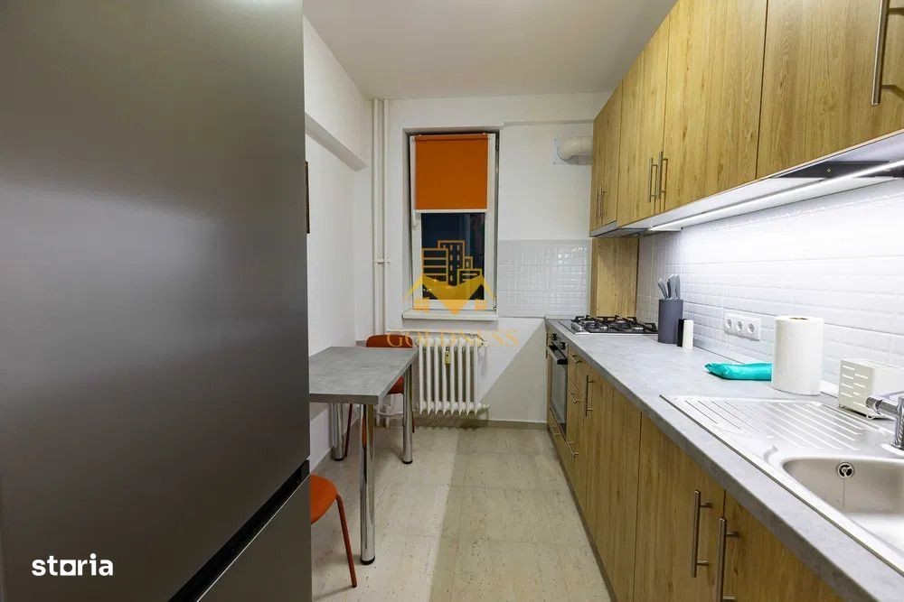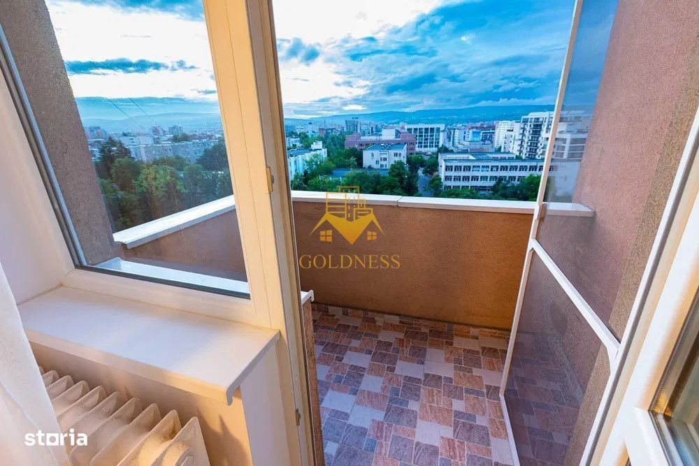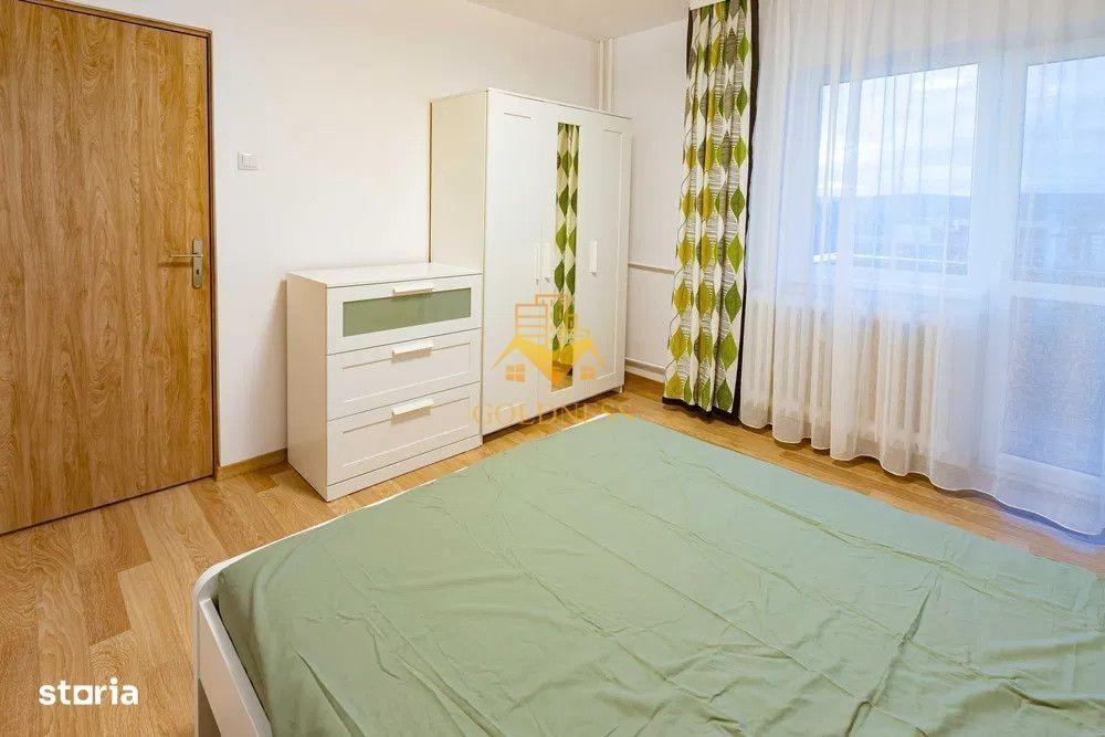 GOLDNESS Imobiliare vă propune spre închiriere un apartament cu 2 camere complet mobilat și utilat, la etajul 8 într-un imobil de 10 etaje, în cartierul Gheorgheni. Apartamentul este compartimentat astfel: - dormitor cu pat matrimonial, dressing, noptiere - living cu canapea extensibila, spatiu pt. depozitare. - bucatarie complet mobilata si utilata, loc de servit masa. - baie cu vana, calorifer port prosop inox și dulap pentru depozitare. - balcon de 5 mp. Imobilul este dotat cu toate cele necesare - centrală proprie, mașină de spălat haine, frigider, plită electrică, hotă, TV, etc. Se află în apropierea stațiilor de transport în comun, magazine, restaurante, spații verzi, farmacii, etc.
