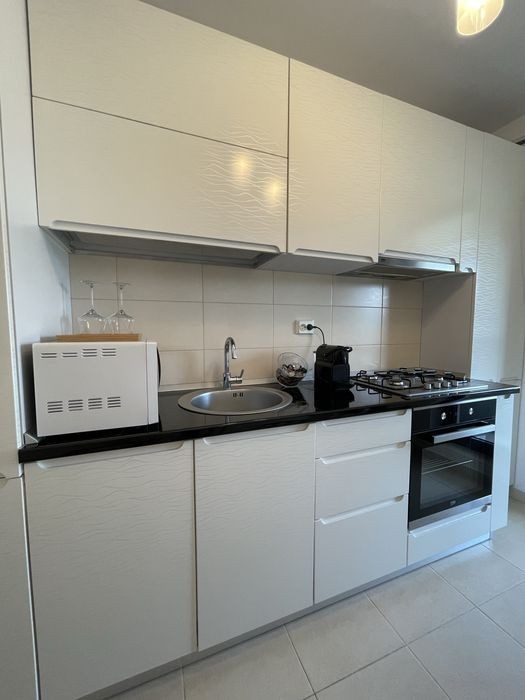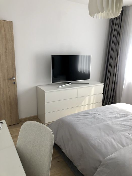 Vand apartament superb de 2 camere in Complexul Greenfield, cu vedere spre Pădurea Băneasa. Apartamentul este complet mobilat şi utilat, are o bucatarie închisă şi o terasa generoasa. Dispune de: centrală proprie, masina de spălat, frigider, TV, masina de spalat vase, espressor de cafea, aragaz, cuptor, cuptor cu microunde, fier de calcat, mobilier birou, mobilier terasa, copertina etc. Imobilul este dotat cu încălzire in pardoseala, numeroase spaţii de depozitare (printre care 2 dressinguri foarte mari), lift si un LOC DE PARCARE. Cheltuielile de întreţinere sunt mici.