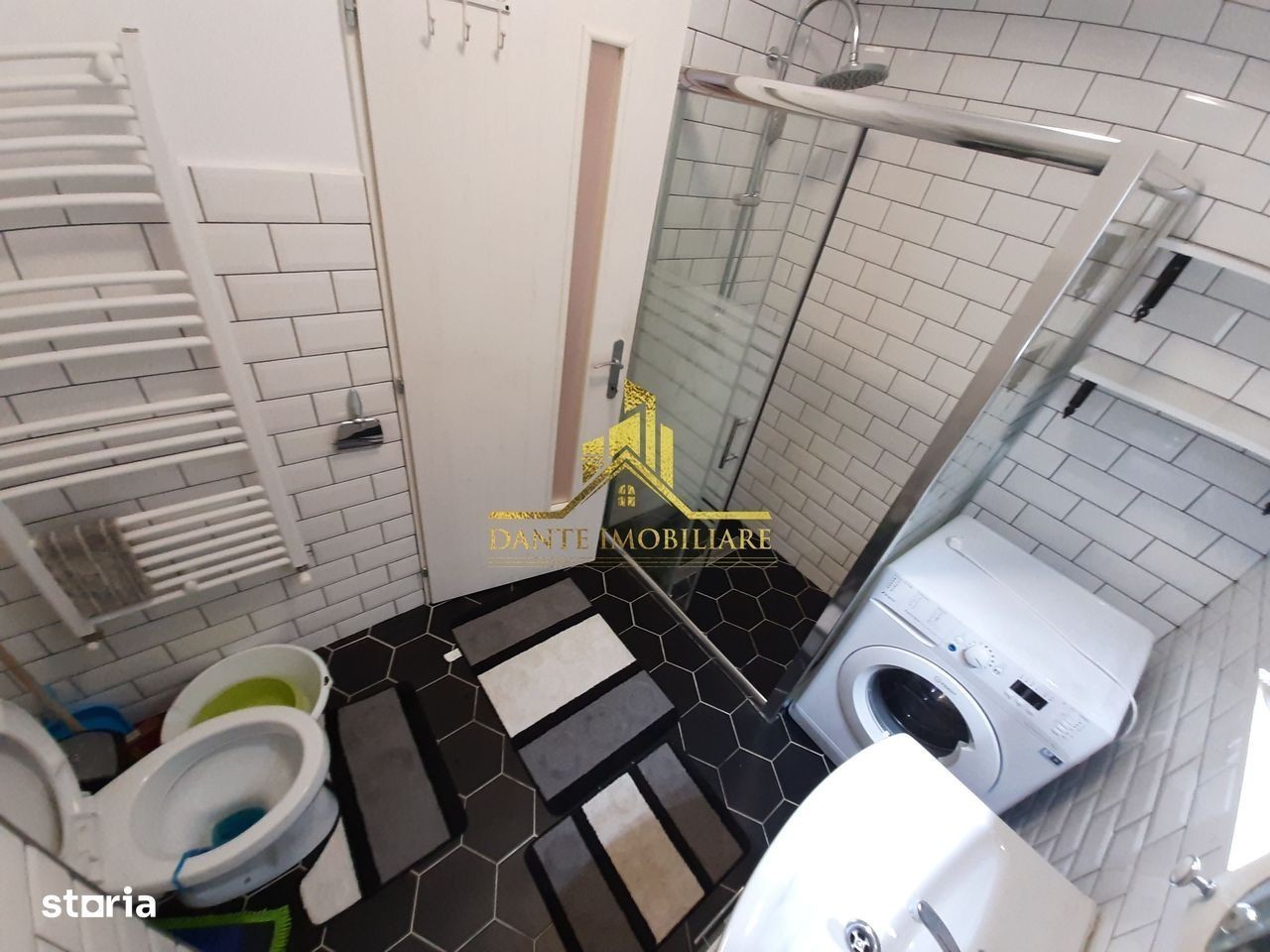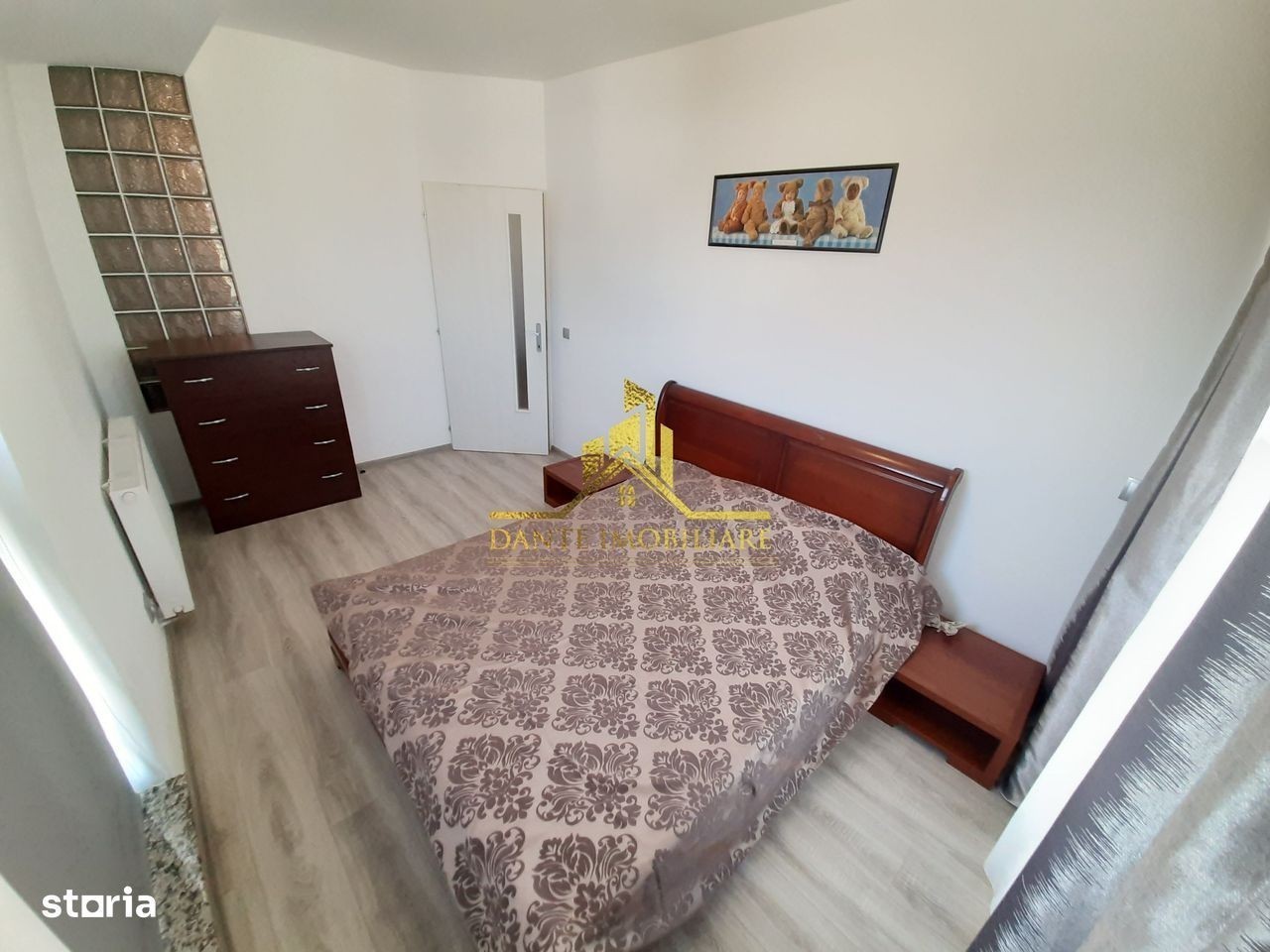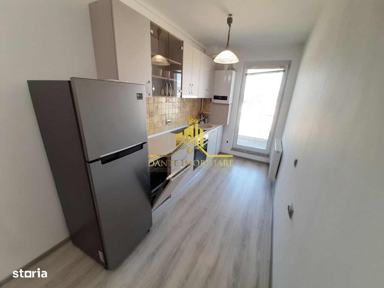 DANTE Imobiliare va propune spre inchiriere un apartament cu 2 camere, semidecomandat, mobilat modern, intr-un imobil nou, cu o suprafata de 45 mp si terasa. Apartamentul este situat in cartierul Gheorgheni, zona Iulius Mall, complex rezidential West Side, aproape de magazine si statiile de autobuz, Apartamentul este situat la etajul 4 din 6, are centrala proprie si compartimentarea este urmatoarea: - living open space cu canapea extensibila, dulap pentru haine,TV, loc de luat masa si spatii de depozitare - bucataria complet utilata si mobilata, fiind dotata cu plita pe gaz, masina de spalat vase, cuptor electric, frigider si masina de spalat rufe - dormitor cu pat matrimonial si comoda - baia cu cabina de dus Separat se poate inchiria un loc de parcare subteran la 50 euro/luna! Pentru vizionari sau detalii,va stam la dispozitie!