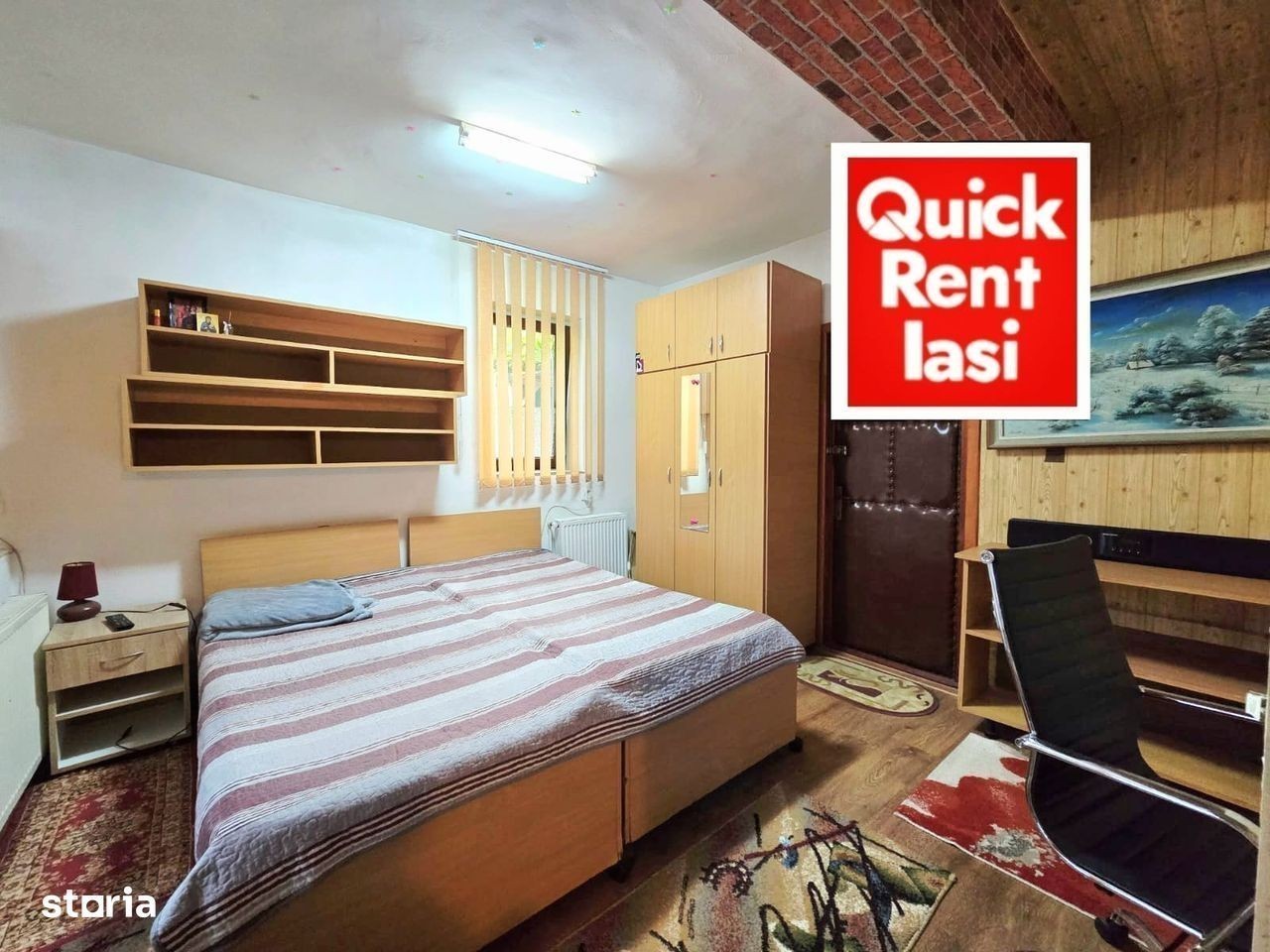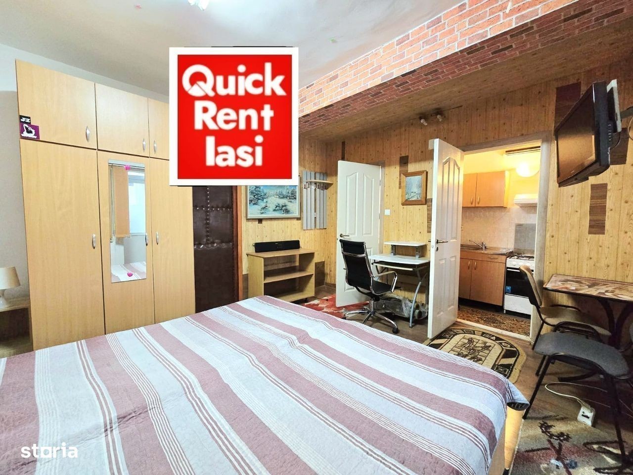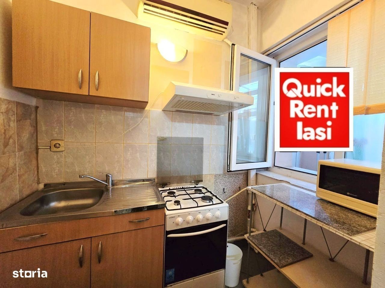 Centru Civic (Hala Centrala-Palas) garsoniera la vila separata de inchiriat pentru 1 persoana : mobilata si utilata complet gresie parchet termopan centrala AC net pat dublu sifonier birou balcon 350euro/luna cu toate cheltuielile incluse in chirie QUICK RENT IASI tel.Contactează 545830