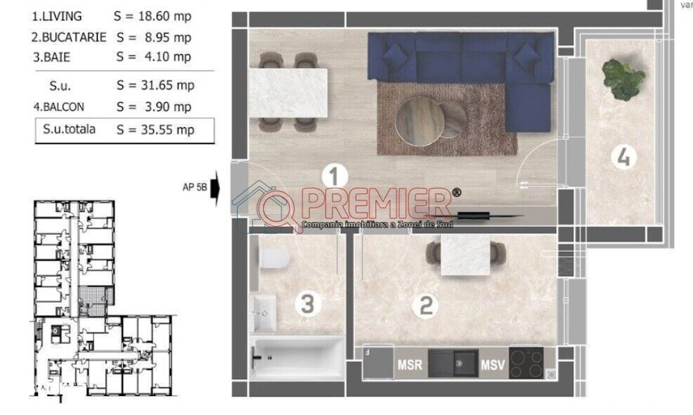 Garsoniera - Grand Arena - Sector 4 - 54.000 Euro + TVA