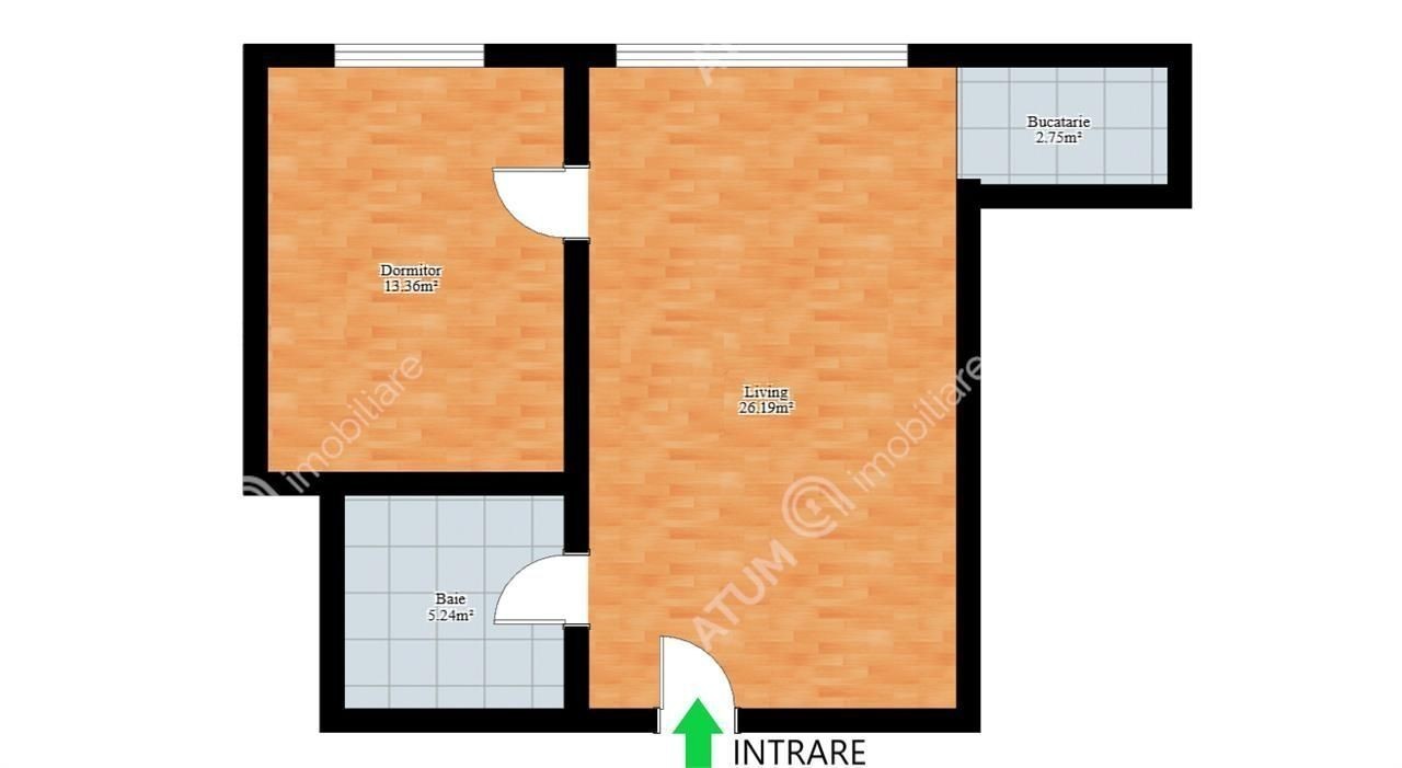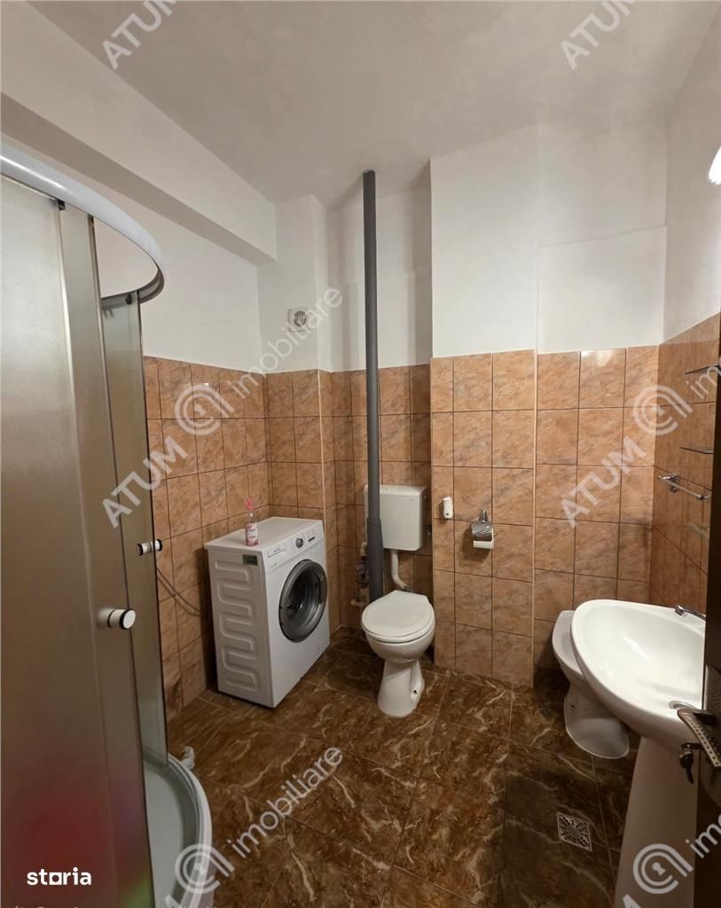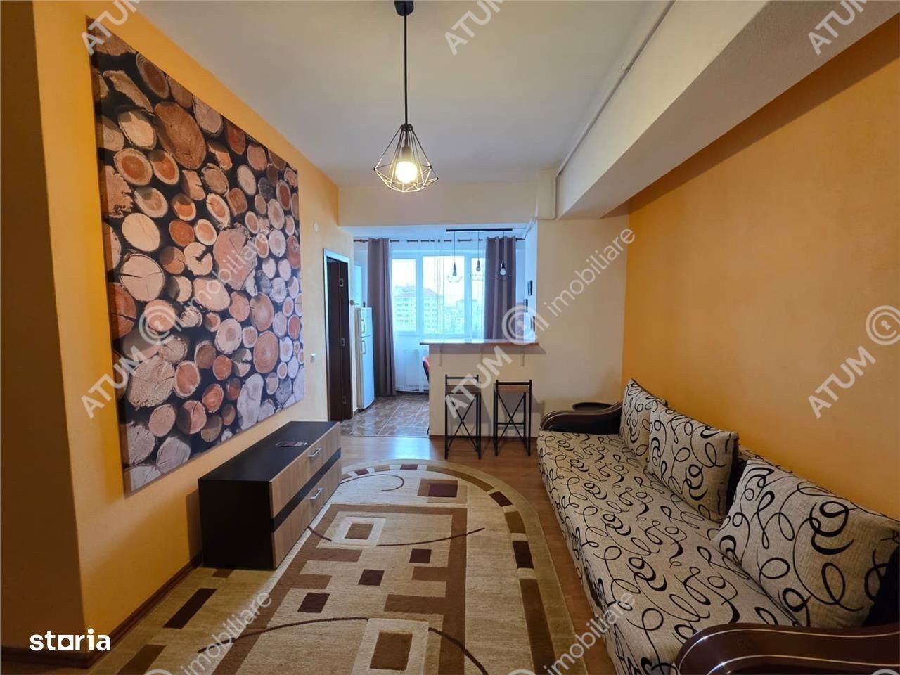 Va oferim spre inchiriere un apartament cu 2 camere, avand o suprafata totala de 59 mp, orientat spre sud-est, situat intr-una din zonele de interes ale orasului, zona Mihai Viteazu din Sibiu. Apartamentul are suprafata utila de 49 mp, aceasta fiind compusa din camera de zi 26 mp, dormitor 13 mp, bucataria deschisa de 3 mp si baie 5 mp. Orientarea sudica a apartamentului ofera lumina naturala la interior pe tot parcursul zilei si genereaza costuri mici de intretinere. Pentru finisarea la cheie s-au ales materiale precum: parchetul laminat, gresie si faianta in baie si bucatarie, peretii zugraviti in vopsea lavabila, usi interioare din lemn, obiecte sanitare, centrala termica pe gaz si calorifere, usa metalica de acces, tamplarie PVC cu geam termopan, baie dotata cu obiecte sanitare, cabina de dus. Apartamentul se inchiriaza complet mobilat si utilat cu mobilier de bucatarie realizat pe comanda din MDF si electrocasnice (aragaz cuptor pe gaz, hota), mobilier de living, mobilier de dormitor specific. In imediata apropiere regasim numeroase magazine alimentare, statie de autobuz, scoala, gradinita, piata, mall centru universitar, restaurante, parc, farmacie. Valoarea de inchiriere este de 340 euro luna + garantie. ID intern: 3135.
