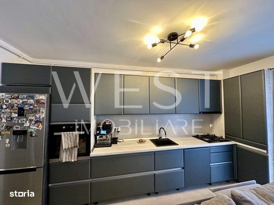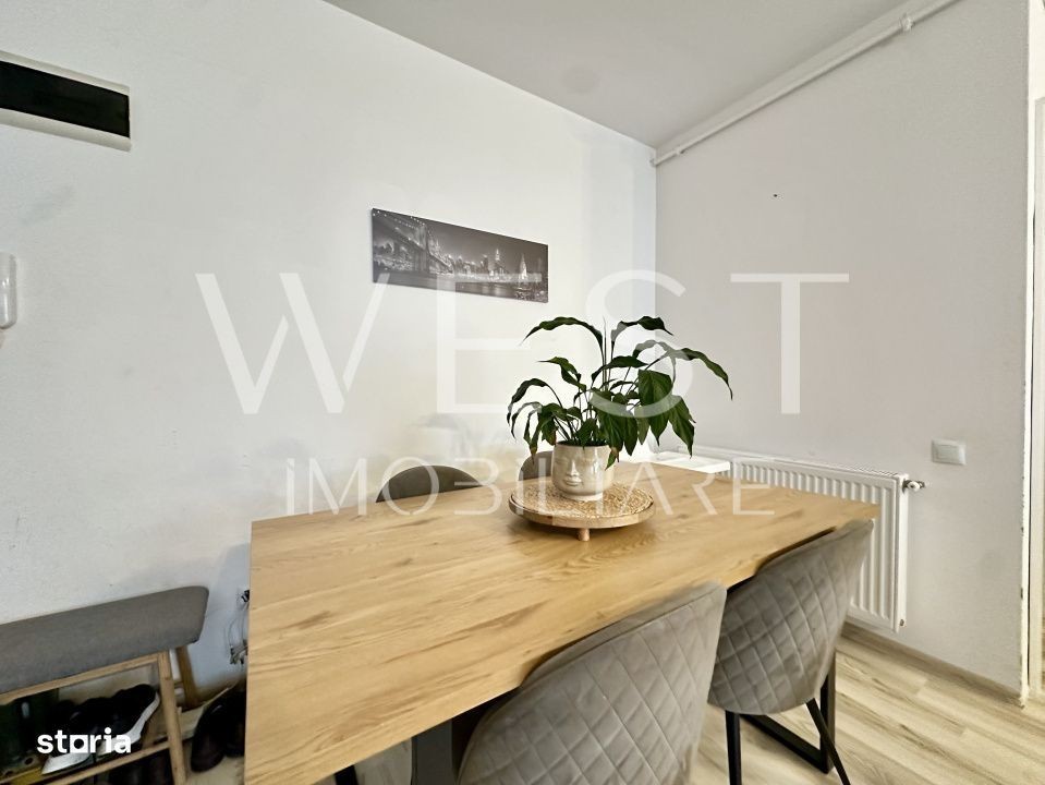 Apartement 2 camere situat pe strada Eroilor, în ansamblul New City, în imediata apropiere a stației pentru mijloacele de transport în comun, magazine de tip supermarket precum PENNY, Profi Market, Carrefour, restaurante și cafenele, școală și grădiniță de stat, iar ansamblul dispune de parcuri și spații de joaca private cu destinație exclusiva locatarilor! Apartamentul are suprafață utila de 61mp + 4mp balcon și este compartimentat modern printr-un living cu bucătărie open-space, cu cămară pentru depozitare, dormitor cu spațiu pentru dressing, hol și baie si se preda complet mobilat și utilat conform imaginilor. Dispune de finisaje moderne, bucătărie mobilată și utilată cu mobilier personalizat si electroicasnice incorporabile, iar baia este echipata cu obiecte sanitare, mașină de spălat și uscător de rufe! Exista posibilitatea achiziționării unui lor de parcare exterior la prețul de 5000euro! Situație juridica clara! Se accepta plata și prin credit ipotecar! Cod ofertă / ID: WST3019