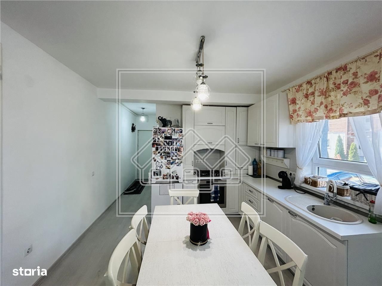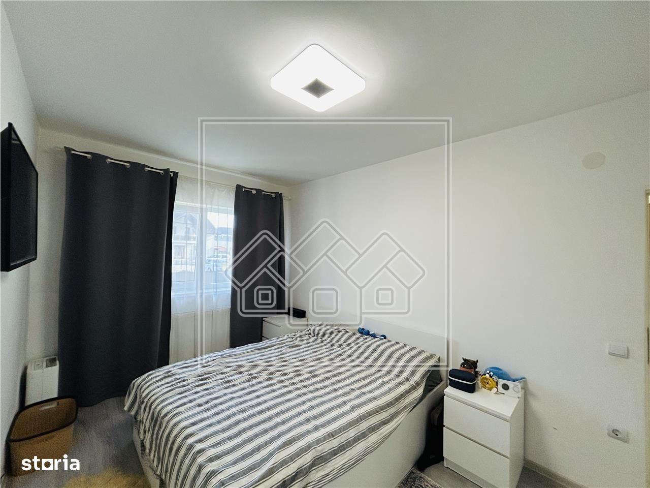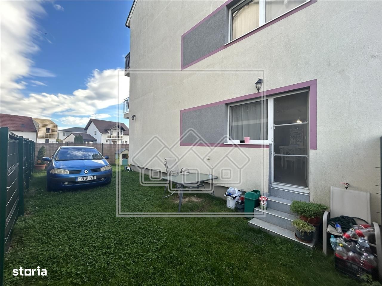 Se vinde apartament spatios si modern, situat in Selimbar, zona Triajului. Locuinta are 60 mp utili si dispune de o gradina privata de 74 mp. Compartimentare: hol, living open space cu bucatarie si iesire in gradina, 2 dormitoare si baie cu geam. Apartamentul se vinde mobilat si utilat, exact ca in poze. Ideal pentru locuit sau investitie. Parter, intr-un bloc cu 2 etaje 1 loc de parcare inclus Zona linistita, cu acces facil catre Sibiu Disponibil imediat. ID:22978