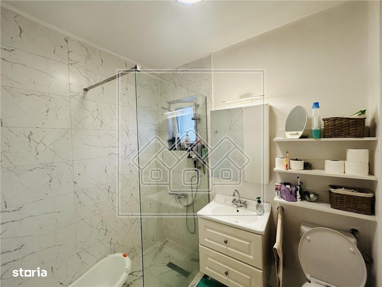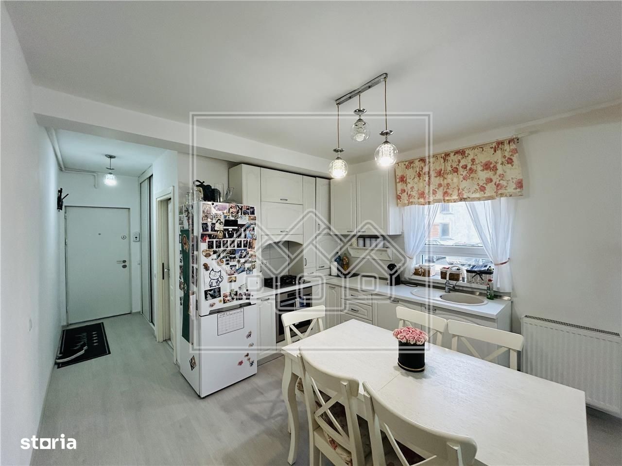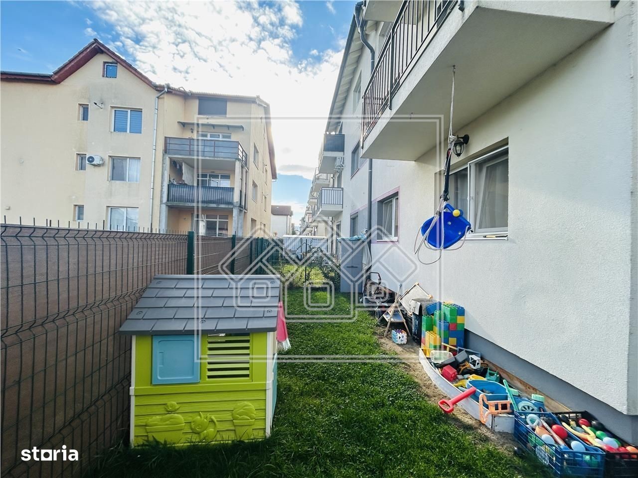 Se vinde apartament spatios si modern, situat in Selimbar, zona Triajului. Locuinta are 60 mp utili si dispune de o gradina privata de 74 mp. Compartimentare: hol, living open space cu bucatarie si iesire in gradina, 2 dormitoare si baie cu geam. Apartamentul se vinde mobilat si utilat, exact ca in poze. Ideal pentru locuit sau investitie. Parter, intr-un bloc cu 2 etaje 1 loc de parcare inclus Zona linistita, cu acces facil catre Sibiu Disponibil imediat. ID:22978