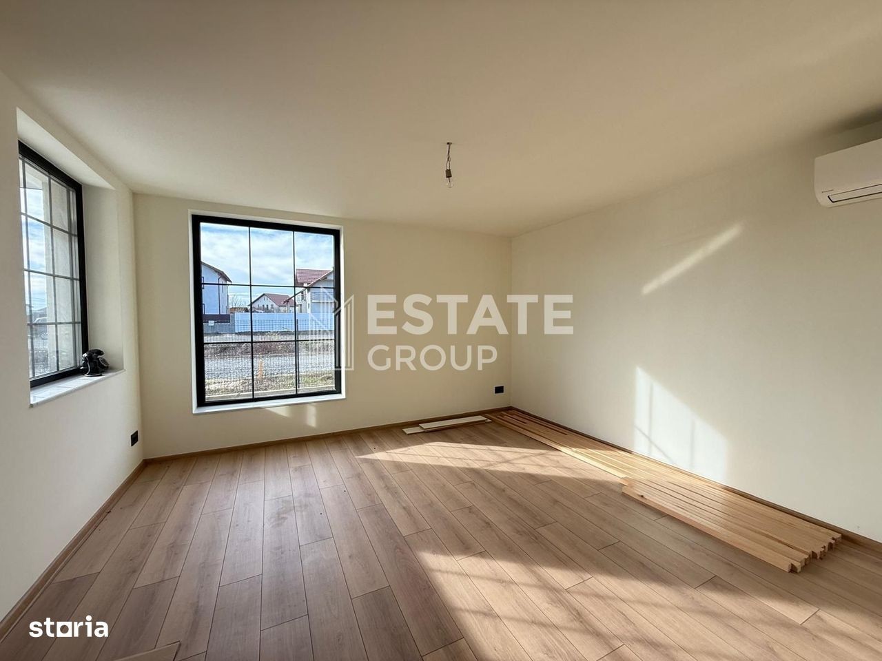 Estate group va prezinta spre vanzare 1/2 duplex cu 6 camere in Mosnita Noua, intr-o zona linistita. Locuinta este la 3 minute de Timisoara, aproape de asfalt (200m). Ideala pentru un stil de viata confortabil in familie sau pentru investitie. Strada din fata proprietatii se va asfalta in curand. Proprietatea este compartimentat astfel: Parter: - Living generos open space cu bucataria - 1 dormitor spatios / birou - 1 baie de serviciu - 1 camera tehnica - Spatiu depozitare sub scara interioara Etaj 1: - 3 dormitoare - dormitorul matrimonial cy baie proprie - 1 baie cu cada - 1 balcon Confortul termic este asigurat prin intermediul centralei proprii pe gaz prin pardoseala si prin intermediul aparatului de aer conditionat multisplit. Locuinta este racordata la toate utilitatilie (apa, gaz, electricitate, canalizare). Duplexurile au in comun peretele de la camera tehnica. Dotari: - Spatiu verde pe cele trei laturi ale imobilui; - Tâmplărie tripan Salamander; - Izolație polistiren 10 cm eps 80; - Curte in fata cu beton amprentat; - Faianta premium; - Prize gewiss; - Glafuri / pervaze marmura si granit; - Bucatarie modern mobilata si utilata cu cuptor si frigider incorportate si insula cu marmura; Pret: 264000 euro negociabil + comision agentie Se accepta si achizitionarea prin intermediul unui credit bancar. Oferim consultanta financiara si juridica gratuita pe tot parcursul procesului. Pentru mai multe detalii despre aceasta proprietate sau pentru stabilirea unei vizionari ne puteti contacta la numarul de telefon: