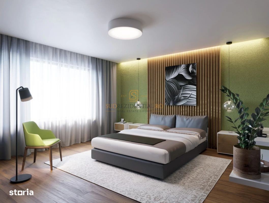 Un concept modern si eficient, gandit pentru cei care isi doresc un stil de viata confortabil si diferit. Acest apartament cu 2 camere este dispus pe doua niveluri (etaj 2 si 3) si face parte din ansamblul AGV Residence din Popesti-Leordeni. Locuinta are o suprafata utila de 60.40 mp si se bucura de doua terase in suprafata totala de 34.35 mp - una pentru zona de zi si una pentru dormitor, oferind acces la aer liber si spatiu pentru relaxare sau amenajare in stil urban. Compartimentare (duplex): Nivel inferior (zona de zi): - Hol + spatiu de depozitare - 8.20 mp - Baie - 5.30 mp - Zona de zi + bucatarie open space - 31.20 mp Nivel superior: - Dormitor matrimonial cu dressing - 15.70 mp Dotari si finisaje: - Centrala termica individuala - Incalzire in pardoseala pentru un confort termic optim - Tamplarie PVC cu geam termopan - Instalatie pregatita pentru aer conditionat - Scara interioara moderna, integrata discret in zona de zi Proiectul este amplasat pe Strada Biruintei, in Popesti-Leordeni, intr-o zona in plina dezvoltare, cu infrastructura moderna si acces rapid catre sudul Capitalei. Statia de metrou Berceni se afla la cateva minute, fiind conectata printr-o pasarela pietonala noua. Transportul public este bine reprezentat prin linii STB si maxi-taxi pe Soseaua Berceni, cu legaturi directe spre principalele cartiere din Bucuresti. In apropiere se gasesc supermarketuri (Profi, Mega Image, Penny), unitati de invatamant, clinici, farmacii, sali de sport si La Strada Mall, cu restaurante, cafenele si magazine. Zona ofera si spatii verzi precum Parcul Laurentiu Raiciu si Parcul Lumea Copiilor - Drumul Fermei, ideale pentru relaxare si activitati in aer liber. Pret de lista: 121.000 Euro + TVA. Pret pentru plata in sistem anticipat: 116.000 Euro + TVA.