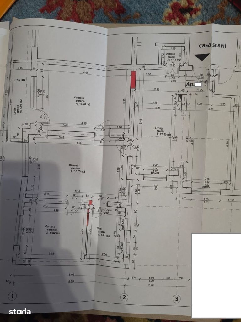 Vand apartament 3 camere (modificat cu autorizatie din 4 camere)