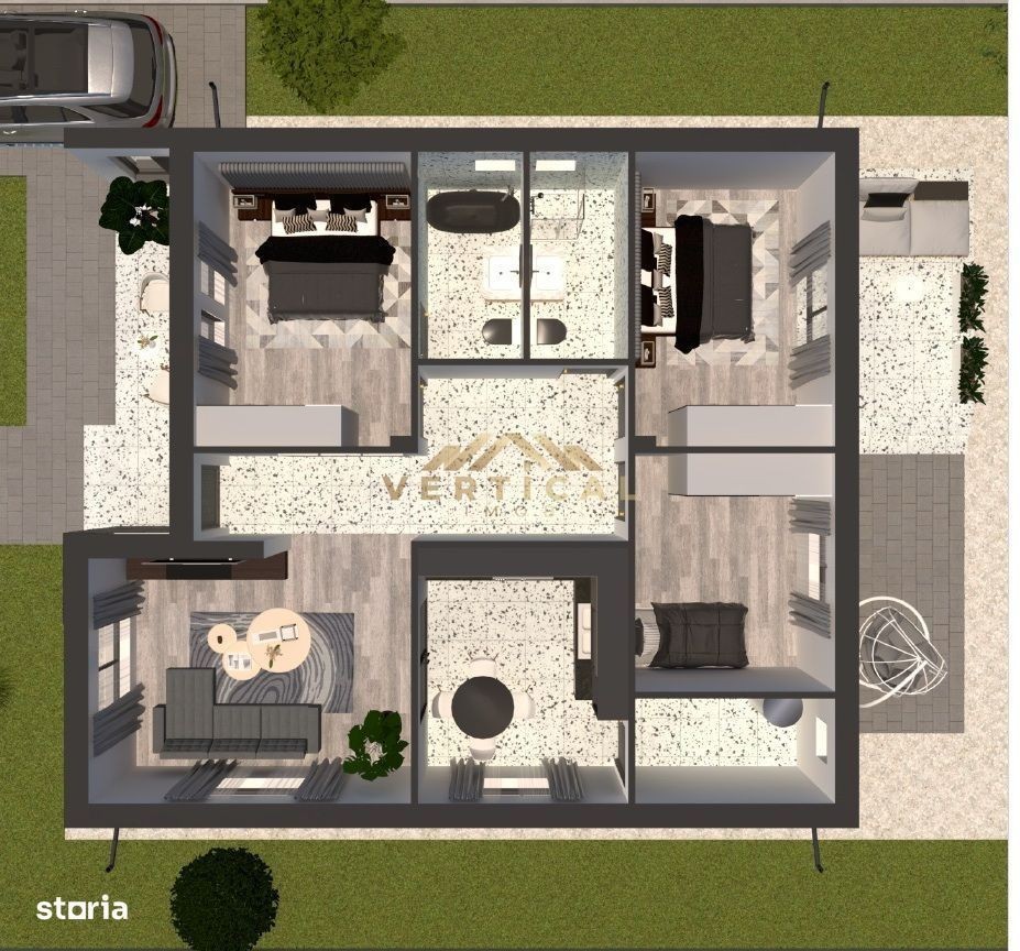 Aveti la dispozitie 3 dormitoare, doua bai, un living spatios si o bucatarie cu spatiu tehnic Casa se vinde la cheie in ianuarie Materialele folosite sunt de foarte buna calitate, incepand cu zidaria, geamurile tripan si izolatia exterioara. Suprafata utila: 85 mp Suprafata teren: 105 mp Regim de înaltime: Parter + POD Pentru mai multe detalii nu ezitati sa ma contactati la tel. Gabriel Surdu - O784.O4O.221 COMISION - O %