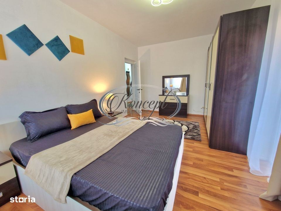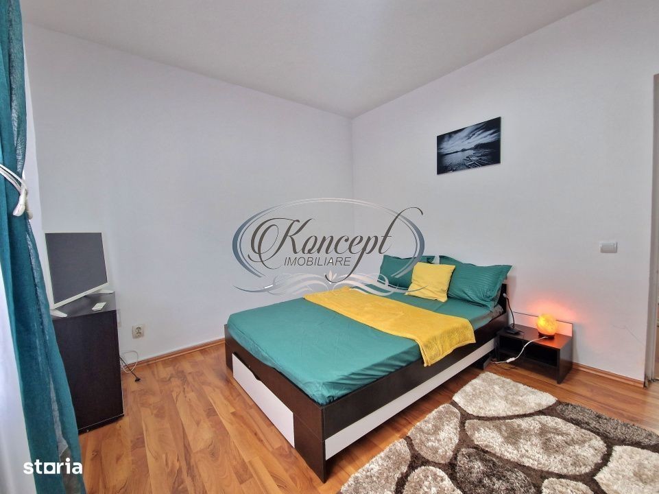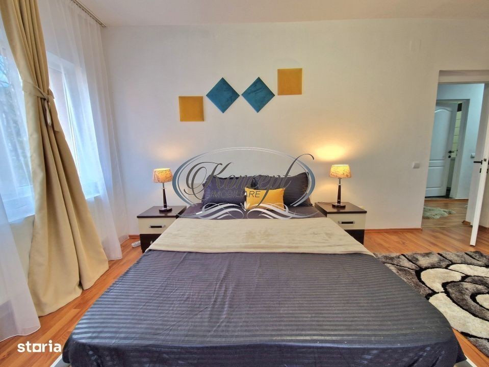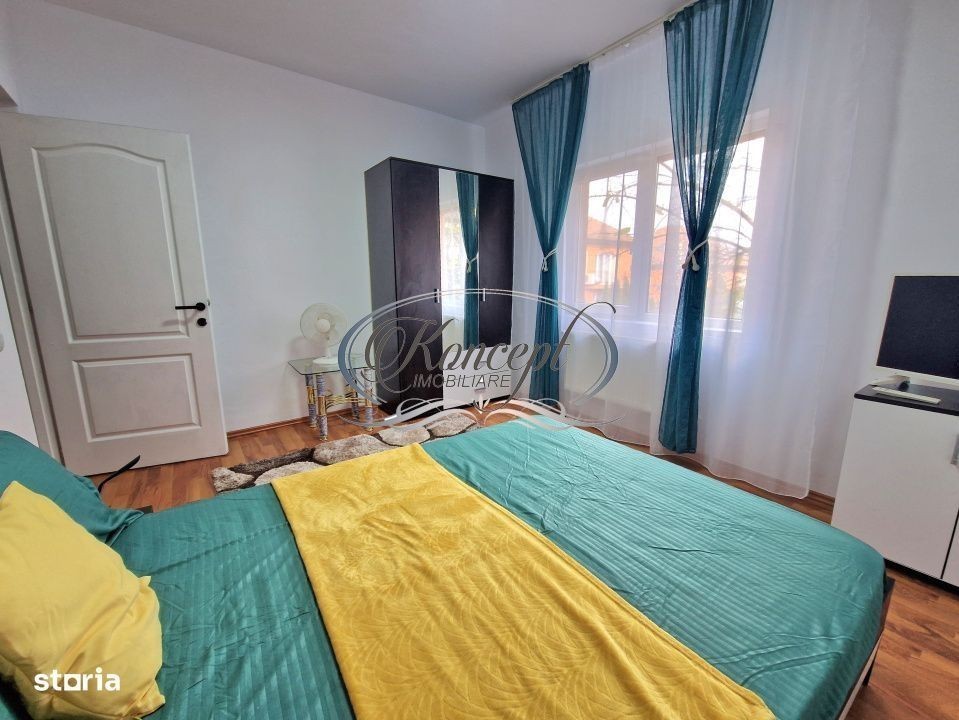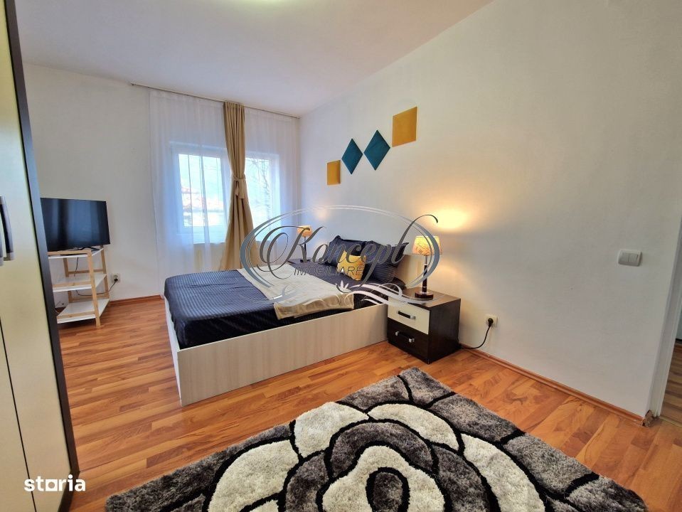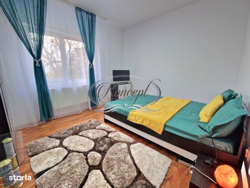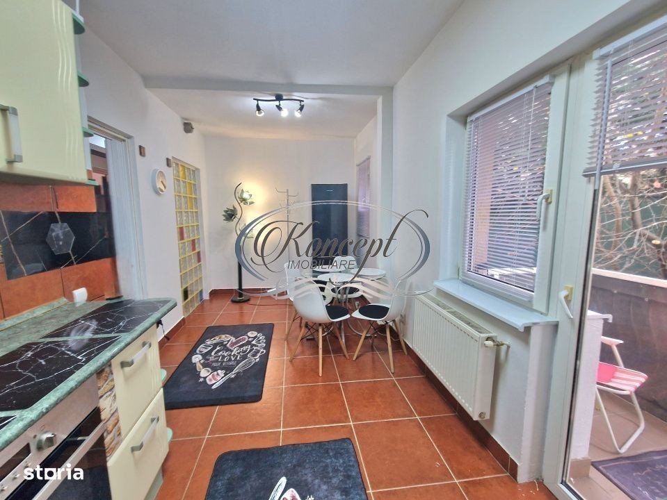 Koncept Imobiliare va ofera spre inchiriere un apartament decomandat situat in cartierul Andrei Muresanu, intr-o zona linistita cu acces facil spre statiile de transport in comun. Proprietatea se afla la parterul unui imobil construit in 2007, retras de la strada principala, cu regim de inaltime D+P+2+M, beneficiind de orientare mixta. Apartamentul dispune de o suprafata utila de 90 mp la care se adauga doua balcoane deschise insumand 13 mp, unul accesibil din bucatarie, iar celalalt cu intrare atat din living, cat si din unul dintre dormitoare. Zona de zi este complet separata de bucatarie, iar compartimentarea include un living generos, doua dormitoare luminoase, un hol amplu si doua bai, dintre care una dotata cu cada si ambele prevazute cu geam. Finisajele sunt moderne, iar tamplaria PVC cu geam termopan contribuie la o buna izolare termica si fonica. Incalzirea se realizeaza prin centrala termica proprie si calorifere. Proprietatea se inchiriaza complet mobilata si utilata, incluzand canapea extensibila in living, electrocasnice moderne precum masina de spalat rufe, plita pe gaz, doua cuptoare electrice, cuptor cu microunde, frigider, hota si trei televizoare. Un avantaj esential il reprezinta locul de parcare exterior inclus in pret, optional se poate inchiria si un loc de parcare subteran la pretul de 50E/ luna, dotat cu usa cu telecomanda si posibilitate de incarcare a masinilor electrice, un beneficiu important pentru chiriasii care apreciaza siguranta si confortul mobilitatii urbane. Pozitionarea intr-o zona rezidentiala linistita, proximitatea fata de transportul in comun, compartimentarea practica si suprafata generoasa transforma acest apartament intr-o alegere potrivita pentru un cuplu, o familie sau studenti care cauta un spatiu bine gandit, confortabil si usor accesibil. Pentru informatii suplimentare, programarea unei vizionari sau pentru a afla oferta noastra completa va stam la dispozitie telefonic, prin e-mail sau la sediul agentiei noastre, pe str. Aviator Badescu, nr. 19, Cluj-Napoca.