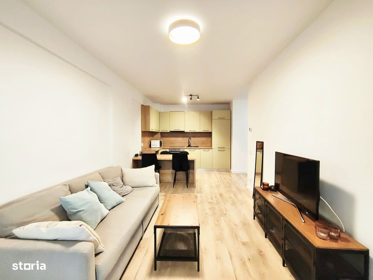 Vă propunem la închiriere un apartament modern compartimentat astfel:living open space cu bucătarie si loc de servit masa,2 dormitoare (unul matrimonial)2 bai,1 balcon,hol intrare.Apartamentul se închiriaza mobilat și utilat:Tv,plită,cuptor electric,hotă,frigider,mașină de spălat rufe,aer condiționat.Apartamentul este situat la etajul 5/10,bloc nou cu lift,din cartier Prima Oneștilor la 3 min de Kaufland"Prima Shop,Lotus Retail 2,mijloace de transport in comun,10 min distanta Piața Unirii.Pret 580 euro negociabil.