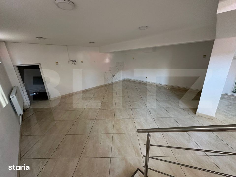 Blitz oferă spre închiriere un spațiu generos, situat la demisol, ideal pentru activități comerciale, birouri sau depozitare. Imobilul se află într-o zonă accesibilă, are acces separat și beneficiază de finisaje moderne, grup sanitar propriu și încălzire. Pentru mai multe detalii, ne puteți contacta.