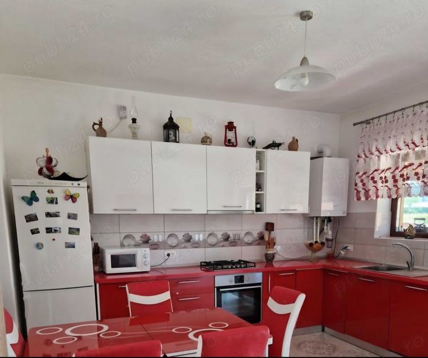 Vand casa individuala la cheie finalizata in 2017 teren 567 metri patrati,pozitie excelenta in vatra satului,finisaje deosebite.Garaj plus tarc caine,suprafata 148 metri patrati.Apa la retea plus foraj,curent,gaz,canalizare,fosa septica,cablu tv,internet fibra optica.Scoala,gradinita,magazin,statie autobuz,dispensar.Primaria este la 5 minute.Regim de inaltime parter plus pod inalt cu geamuri pentru mansardare.Casa are 4 camere,acoperita cu tigla tondach si lemn de cea mai buna calitate.Termoizolata exterior cu polistiren de 10 cm geosime cu caramida poroterm de 30 cm.Ferestre cu tamplarie salamander,feronerie rotto si 3 randuri de sticla.Parchet laminat,gresie,faianta,instalatie electrica de cea mai buna calitate.Instalatie sanitara cu materiale de cea mai buna calitate.Centrala termica prin condensatie pe gaz.Pereti tencuiti mecanizati,finisaje deosebite,exterior decorativa sto,sape semi uscate si elicopterizate cu izolatie.Comlartimentare Hol cu living open space,3 dormitoare,2 bai cada si dus,bucatarie mare cu camara.terasa mare.pod inalt cu scara rabatabila si geamuri pretabil pentru mansardare,placa de beton izolata cu sapa turnata.Casa se vinde mobilata si utilata.Mobila la comanda,bucatarie staier cu aparatura de calitate,combina frigorifica gorenje,cuptor electric gorenje,plita gorenje,hota gorenje.Masina de spalat vase bosch.Televizoare smart samsung,masina de spalat bosch,uscator de rufe cu pompa de caldura.Teren imprejmuit cu gard din placi de beton,porti din fier forjat,curte betonata,gazon,pomi ornamentali si flori.Constructia este realizata de firma specializata respectandu-se schitele proiectului autorizat.Mai multe detalii la telefon