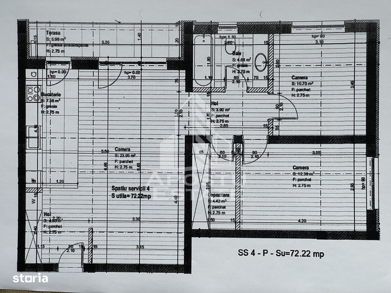 APOSTU ESTATE va ofera spre vanzare spatiu comercial cu 3 camere, semidecoamandat, situat in Giroc in zona Planetelor. Suprafata utila este de 72 mp si este compartimentat astfel: - incapere openspace de aproximativ 35 mp cu acces la terasa de 6mp; - hol; - grup sanitar; - doua inceperi separate; - spatiu depozitare. Confortul termic se realizeaza cu ajutorul centralei proprii pe gaz cu incalzire in pardoseala. Dispune de 1 loc de parcare. Blocul este realizat din caramida Porotherm cu izolatie de 10 cm. Geamurile sunt tripan. La pretul de vanzare al spatiului se adauga 19% TVA. Va asteptam cu drag la o vizionare! CP2360142