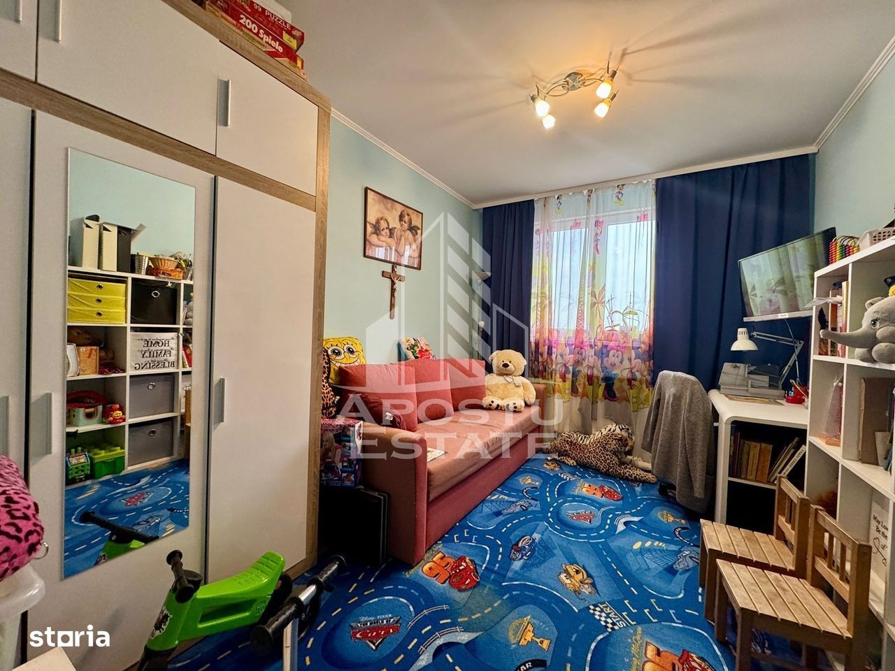 POSTU ESTATE va ofera spre vanzare un apartament cu 3 camere, amplasat la etajul 8/11, situat in zona Lipovei. Zona este linistita, apartamentul aflandu-se la doar 7 minute de mers pe jos fata de Bega Mall Lipovei sau fata de statia de autobuz, parc, scoala sau gradinita. Apartamentul are o suprafata utila de 70 mp + o terasa de 6mp, fiind compartimentat astfel: - hol acces -living cu iesire pe bakcin -bucatarie inchisa -baie cu cada -dormitor copii domitor matrimonial cu baie si dressing Locul de parcare se poate achizitiona separat la pretul de 7000 euro Confortul termic este realizat prin intermediul centralei proprii pe gaz si al aparatului de aer conditionat. Se vinde mobilat si utilat, precum in poze. Oferim consultanta bancara prin colaboratorii nostri pentru alegerea celui mai potrivit credit imobiliar. Disponibil imediat. Va asteptam cu drag la o vizionare chiar astazi! ID intern: CP2831516