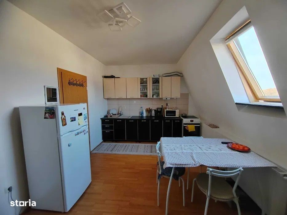 360 Grade Imobiliare vă propune spre vânzare un apartament cu 2 camere, situat într-o zonă foarte liniștită și verde a cartierului Dâmbovița. Locuința se află la mansardă și oferă un potențial excelent de amenajare, cu posibilitatea recompartimentării în 3 camere. Zona are câteva avantaje evidente. Supermarketurile Lidl, Carrefour și Profi sunt la doar câteva minute de mers pe jos. Școala se află chiar lângă bloc, iar Parcul Clăbucet este în imediata apropiere, un loc potrivit pentru relaxare și activități în aer liber. Traficul redus conferă un plus de liniște. Apartamentul este dotat cu centrală termică și aer condiționat, astfel că nivelul de confort este foarte bun în orice anotimp. Spațiul este generos, luminos și permite o reamenajare flexibilă. Mansarda a fost construită în 2016, folosind materiale de calitate, iar camerele sunt surprinzător de spațioase. Este o locuință potrivită pentru cei care își doresc acces rapid la facilități urbane, fără a renunța la liniștea de acasă. Prețul este 84.000 euro, la care se adaugă comisionul agenției. Pentru detalii suplimentare și vizionări îl puteți contacta pe Mădălin la