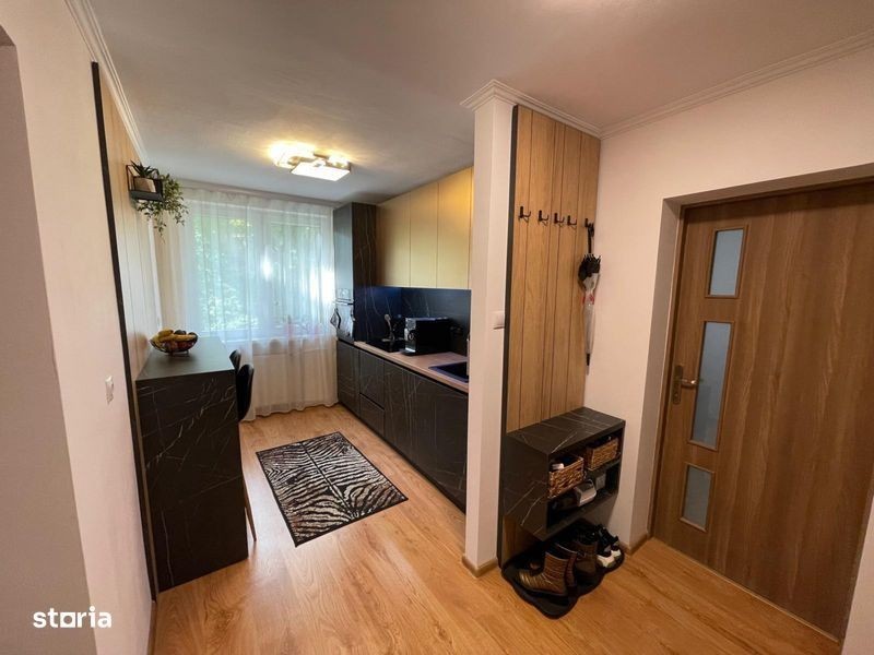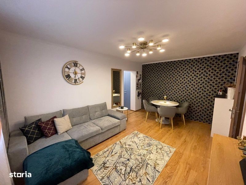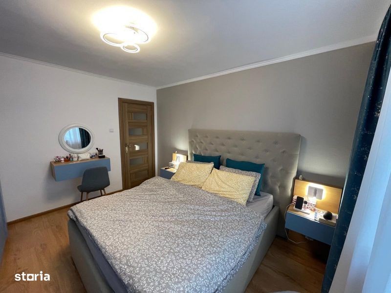 Se vinde apartament TIP A 3 camere complet renovat, utilat la cheie, in zona Rogerius str. Aluminei etaj 2 din 4. Toate actele in regula, proprietar. Apartamentul are 59 metri patrati utili, format din 3 camere, 2 holuri, 1 bucatarie, 1 baie, 1 balcon. Apartamentul se vinde complet mobilat si utilat (la cheie) Ideal pentru o familie care doreste doar sa se mute fara a face mari eforturi. Costurile de intretinere au fost de maxim 600 RON pentru doua persoane avand o temperatura constanta iarna de 23-26 grade. Apartamentul a fost finalizat de renovat in luna Februarie 2023, fiind utilat cu aer conditionat, geamuri Termopan, Instalatie electrica noua pentru marii consumatori, tot mobilierul este nou facut la comanda. Toate electrocasnicele au fost cumparate recent.Lustrele sunt toate LED dimabile din intrerupator pe 3 nivele, calorifere din tabla. Ca si locatie este una extraordinara, linistita cu vecini linistiti, in zona avand gradinita (300 m) scoala (300 m) sala de fitness (200 m), magazine alimentare mai mult de 5 in perimetrul de 500 m, aproape de malul crisului repede, cu acces la statii de autobuz si tramvai (200-300m) Acesta beneficieaza de loc de parcare (de la asociatie 160 RON/AN) Compartimentat dupa cum urmeaza : Hol - acesta este mobilat avand un pantofar imens alaturi de un frigider incorporat, usa de intrare fiind schimbata cu una moderna de siguranta si un cuier modern pana in tavan. Bucatarie - aceasta este complet mobilata si utilata avand : plita inductie si cuptor electric Electrolux, masina de spalat vase incorporata, hota incorporata ascunsa, chiuveta compozit neagra de cea mai buna calitate. Tot in bucatarie se regaseste un loc de luat masa tip bar pentru doua persoane. Mobila a fost facuta toata la comanda fiind facuta din pal EGGER de 20 mm. Living - Din bucatarie se face intrarea in living unde se regaseste o coltar extensibil cu mini-biblioteca incorporat, o comoda suspendata cu un TV smart U-HD Samsung de 127 cm, corp tip biblioteca si un loc de luat masa pentru 4 persoane cu scaune de tip scoica moderne, asr conditionat 12.000 BTU Ariston. Hol - Din living se intra intr-un hol unde se regaseste un spatiu de depozitare maricel si masina de spalat haine. Baie - Baie complet renovata si utilata (mobilier la comanda) cu vas de toaleta incorporat cu un design modern, avand cada si paravan extensibil cersanit, oglinda cu led si dezaburire, ventilator modern puternic. Dormitor - Cu un dressing super incapator facut la comanda, pentru EL/EA, avand incorporat un TV Smart LG 4K de 108 CM, pat tapitat cu somiera rabatabila avand spatiu de depozitare sub saltea, saltea de 20 CM ortopedica, doua noptiere suspendate echipate cu lampi led si o masuta de machiaj suspendata. Camera Tineret - Echipata cu un dressing, birou, scaun de birou, pat copil, fotoliu, etajera pentru carti si un Smart Tv Samsung de 80 CM. Balcon - Balconul este deschis deoarece apartamentul este pozitionat spre o mini padurice avand verdeata pe tot parcursul anului. Acesta este complet renovat avand o masa de terasa alaturi de doua scaune, jardiniere inalte si 3 ghivece cu plante atarnate pe perete. Un loc extra ordinar de relaxare. Acesta a fost conceput astfel incat daca se doreste inchiderea lui sa se poata inchide usor (doar tamplarie PVC). Pretul este fix, nu fac schimburi, exclus agentii.