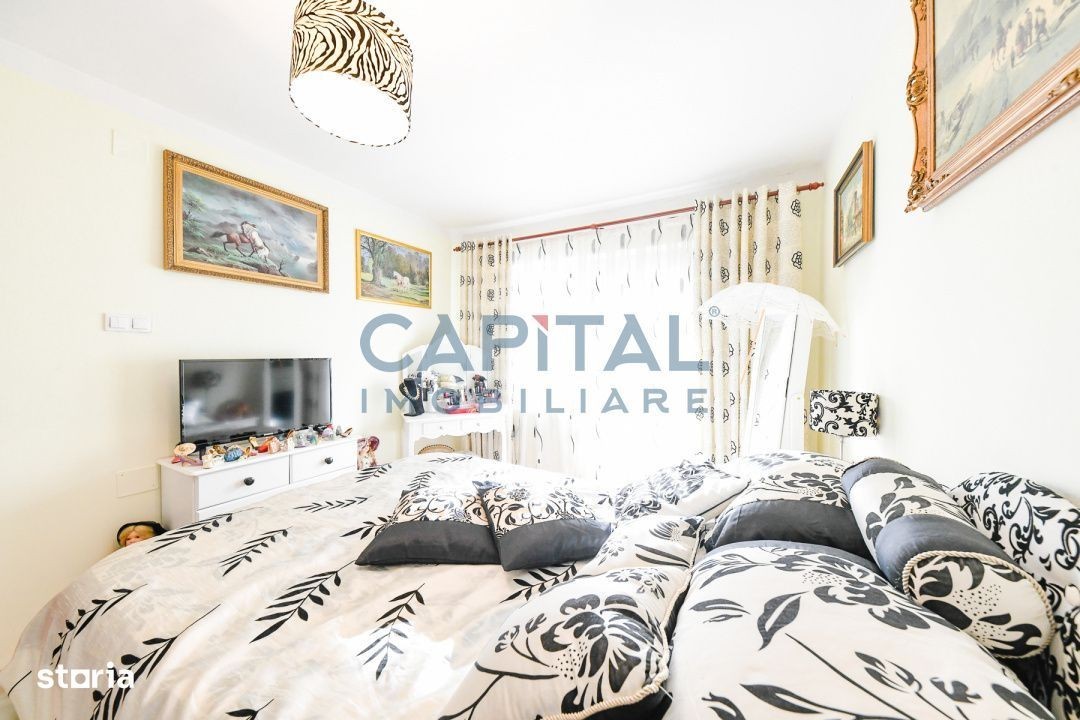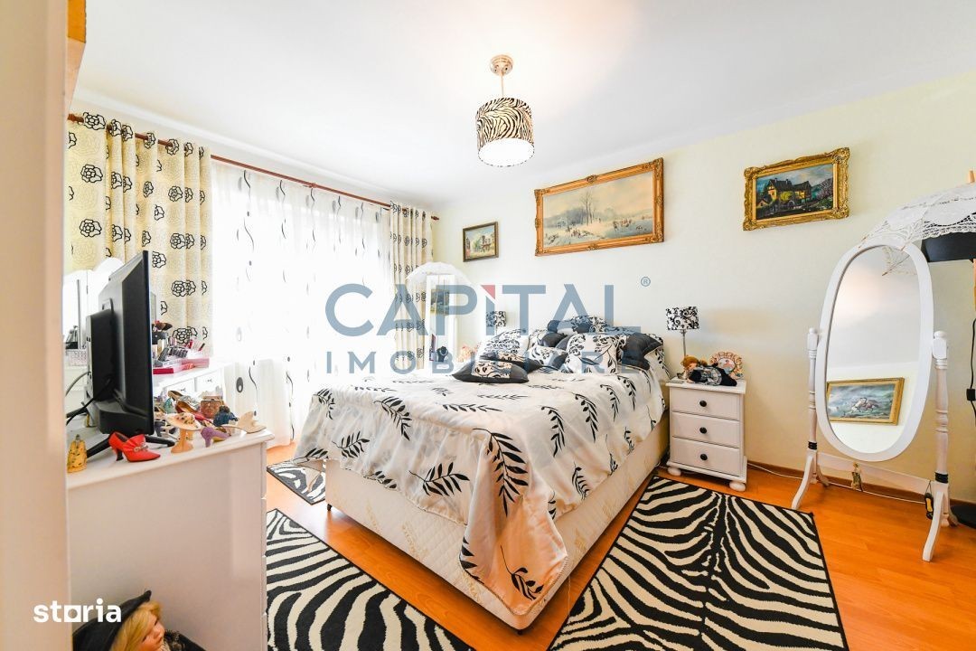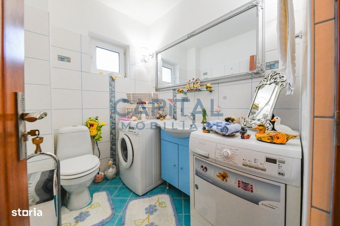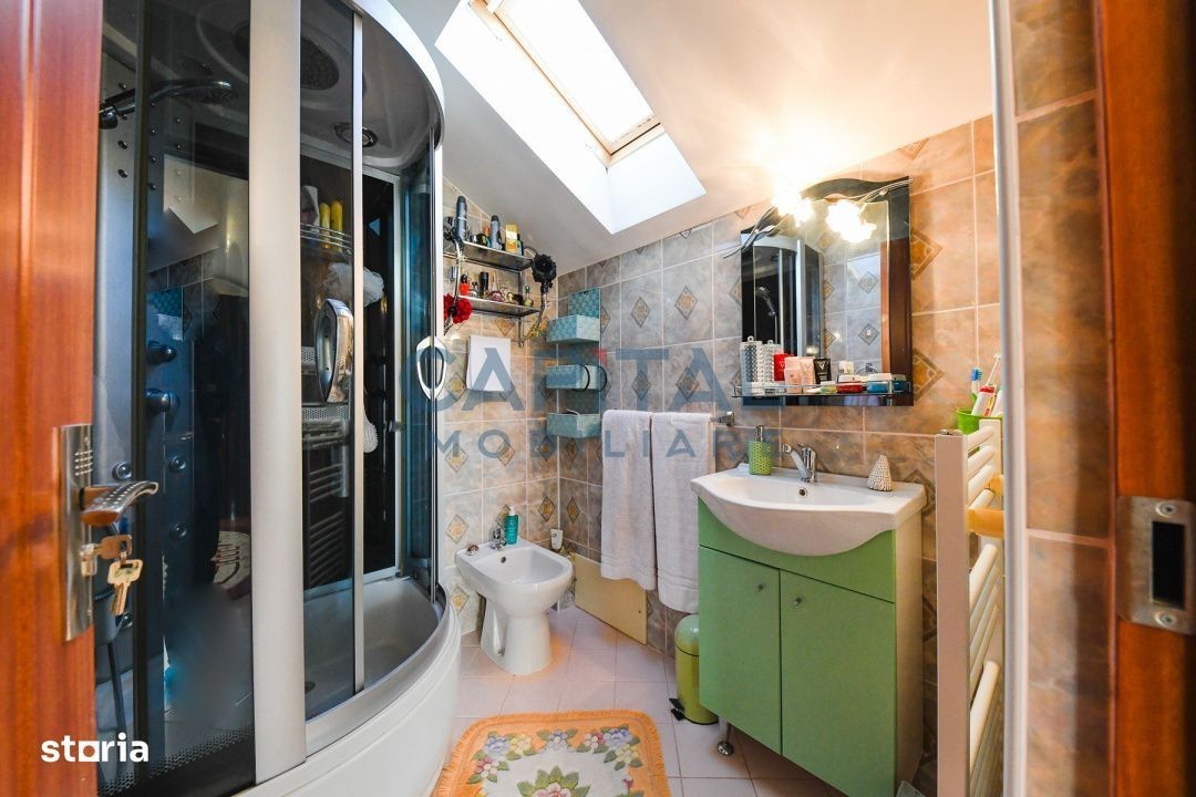 Capital Imobiliare vă propune fără comision spre vânzare o casă individuală situată în cartierul Iris, zona Auchan, Cluj Napoca. Proprietatea este edificată pe regimul de înălțime P+E+M și dispune de o suprafață utilă de 120 mp, iar terenul aferent este de 245 mp. Casa este compartimentată astfel: La parter se află un living generos cu spațiu de depozitare, o bucătărie și o baie. La etaj sunt două dormitoare luminoase, două băi și un balcon. La mansardă se găsește o cameră suplimentară, spațiu de depozitare și aer condiționat. Proprietatea dispune de garaj pentru o mașină și un loc de parcare exterior. În curte se află o căsuță de vară din lemn cu suprafața de 25 mp, ridicată pe fundație de beton, prevăzută cu bucătărie, cuptor tradițional și un spațiu potrivit pentru relaxare sau activități culinare în aer liber. De asemenea, curtea include o cascadă ornamentală care completează armonios spațiul de relaxare. Casa principală se predă parțial mobilată, iar căsuța de vară se predă goală, oferind libertate completă de amenajare viitorului proprietar. Proprietatea este amplasată într-o zonă liniștită, cu acces rapid către magazine, mijloace de transport, farmacii și alte puncte de interes din Iris, fiind o opțiune foarte bună pentru cei care caută confort și accesibilitate. Comision 0% Pentru mai multe detalii și pentru organizarea unei vizionări, vă invităm să ne contactați.