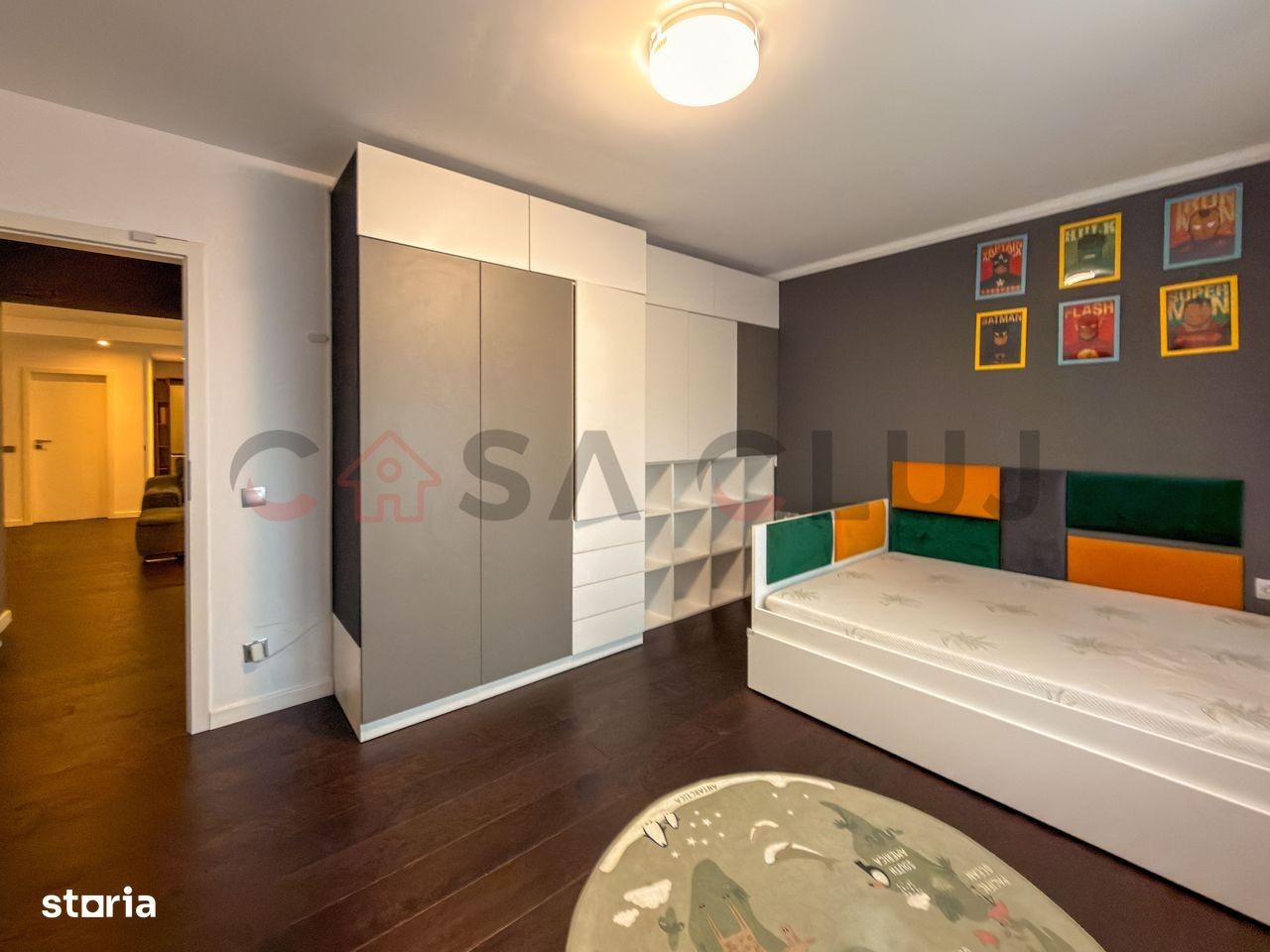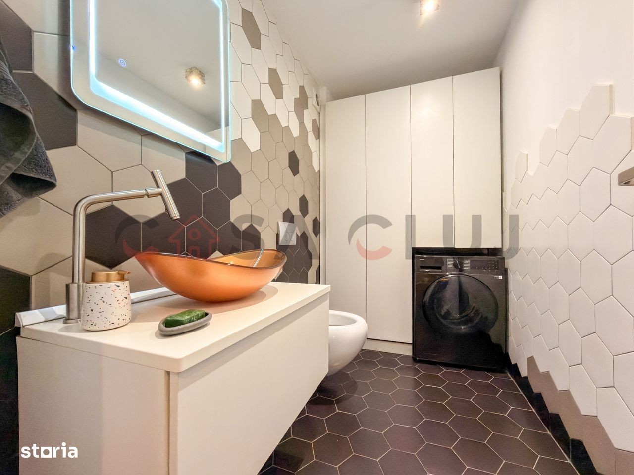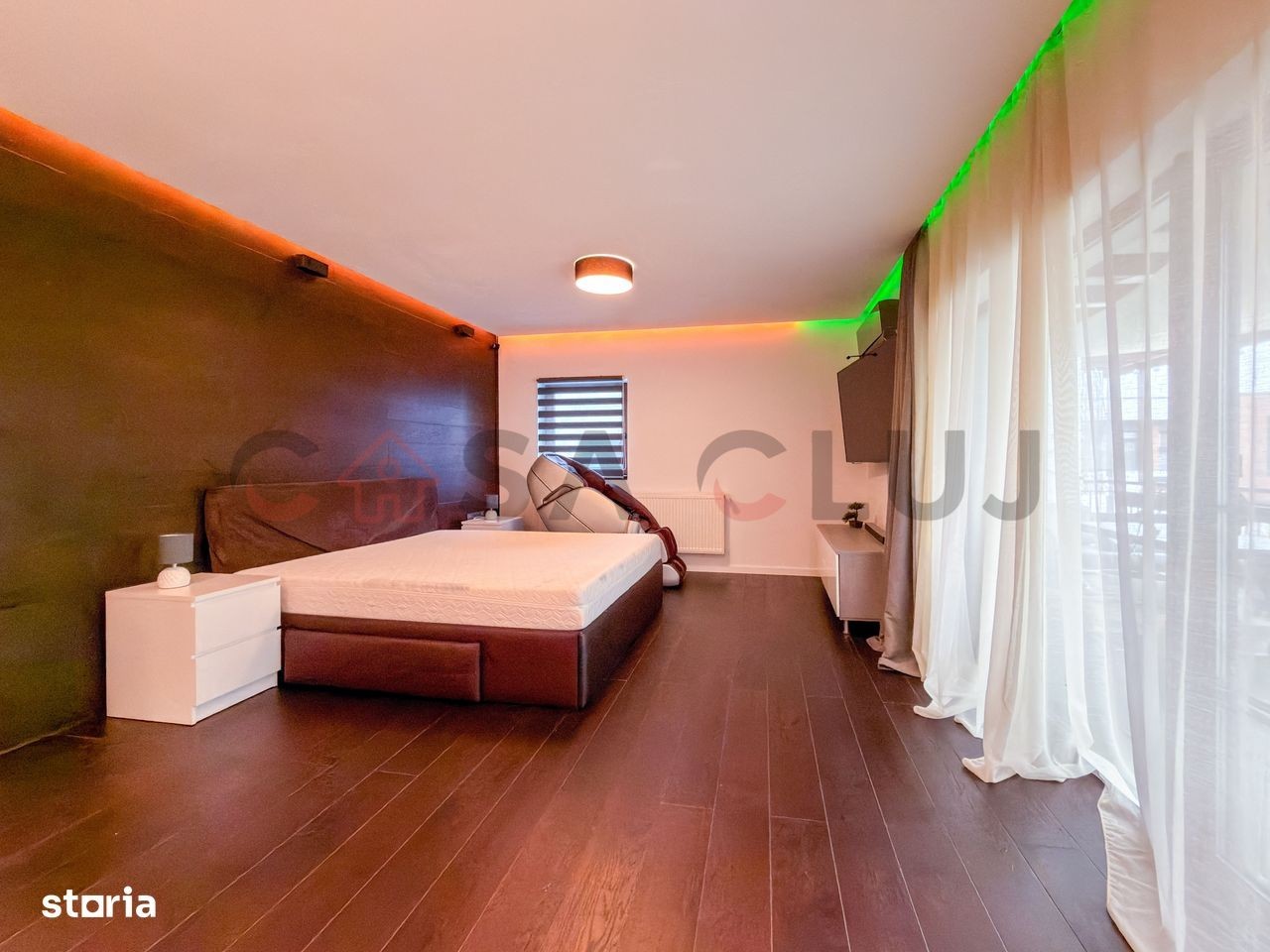 Un apartament spațios și elegant, situat în cartierul Europa, pe strada Eugen Ionesco, una dintre cele mai apreciate zone rezidențiale din Cluj-Napoca, la doar 3 km de centru. Zona oferă confort urban complet - stație de autobuz și easybox chiar în fața blocului, iar la doar 5 minute de mers pe jos se află Mega Image, Moldovan, farmacie și Profi. Detalii generale: Suprafață utilă: 106,32 mp Terase: 20 mp acoperită + 51 mp balcon semi-închis Orientare: sudică (terasă) și estică (dormitor secundar) Etaj: intermediar, într-un imobil cu doar 6 apartamente Se vinde complet mobilat și utilat, cu electrocasnice noi (2025) 2 locuri de parcare în garajul subteran: unul in proprietate + unul cu chirie redusă. Puncte forte: Finisaje premium: parchet triplu stratificat din stejar, lumini ambientale, bucătărie open-space complet echipată Living generos (40+ mp) cu zonă de bar ce poate fi transformată în dining și priveliște frumoasă asupra orașului Dormitor matrimonial (22 mp) cu dressing separat (9,2 mp), birou, aer condiționat smart și acces la terasa însorită Baie principală (6,65 mp) cu produse Grohe, Kludi, Geberit, încălzire în pardoseală, fereastră și walk-in shower Dormitor secundar (15,56 mp) orientat estic, perfect pentru copii sau oaspeți Sistem smart home: control Netatmo pentru încălzire, iluminat Philips Hue, senzori de securitate, folie privacy pe geamuri 2 parcări subterane mari, ambele cu prize 220V simple și industriale (pentru mașini electrice) o parcare este in proprietate (cu CF) care se vinde impreuna cu apartamentul la o diferenta de pret de 20 000Euro, iar una este închiriată cu 200 lei/luna. Spații exterioare și comunitate: Terasă acoperită de 20 mp, amenajată cu gazon artificial - ideală pentru relaxare, grădină urbană sau dining în aer liber Balcon semi-închis (5mp) accesibil din living Grădină comună privată pentru locatari, folosită ca zonă de relaxare și loc de joacă Comunitate restrânsă, liniștită și prietenoasă Localizare: Strada Eugen Ionesco, cartier Europa - zonă premium, liniștită, dar foarte bine conectată la centru și la principalele puncte de interes. Apartament complet mobilat și utilat, pregătit pentru mutare imediată. O proprietate rară, ideală pentru cei care caută confort, intimitate și calitate superioară în Cluj-Napoca.