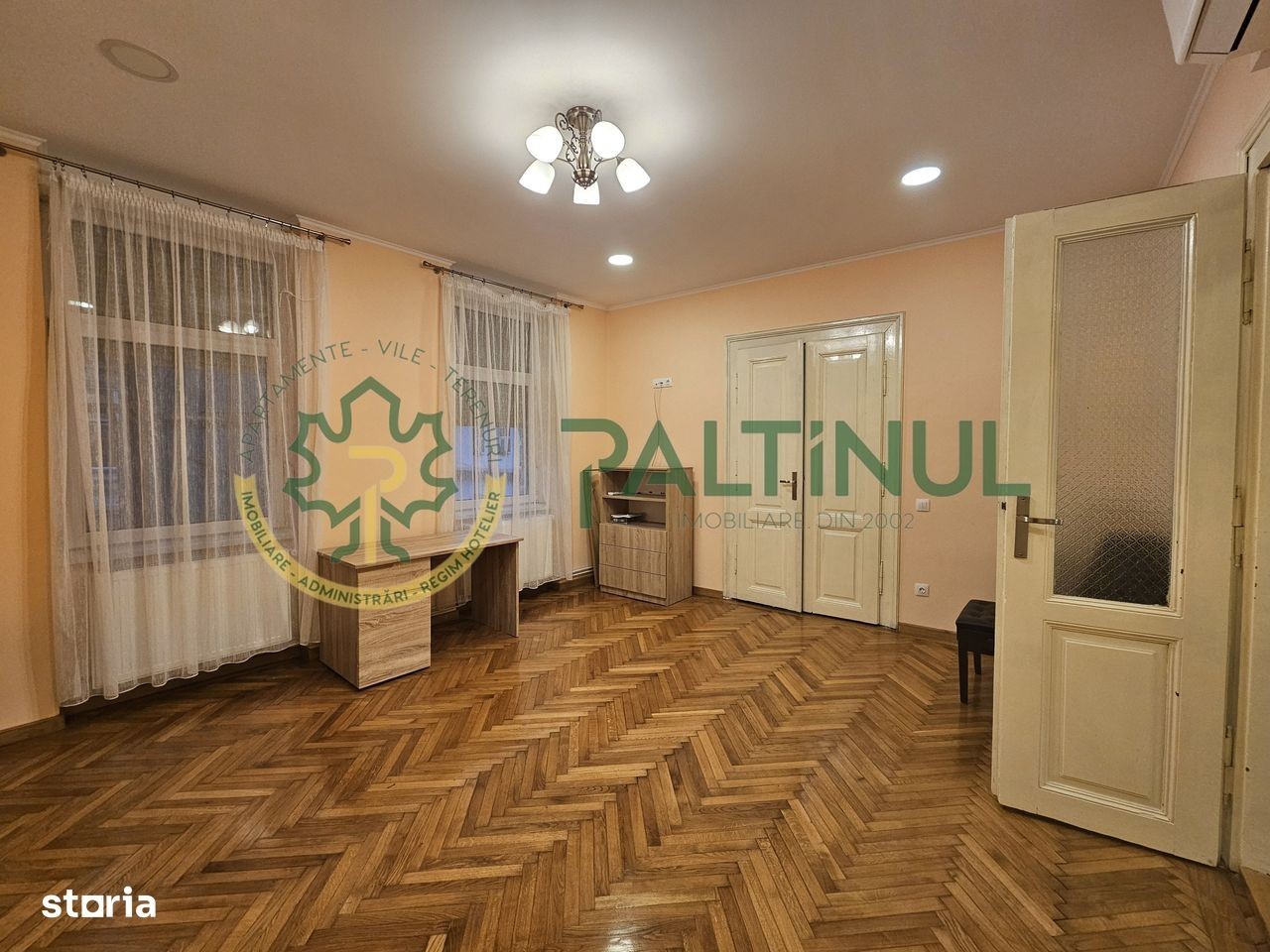 Apartament cu 2 camere, decomandat, 77 mp, disponibil pentru închiriere începând cu 01.12.2025, situat în zona Centrul Istoric Sibiu, una dintre cele mai căutate și accesibile zone ale orașului. Imobilul se află la etajul 1 al unei case cu arhitectură specifică zonei, oferind spații luminoase și bine compartimentate, precum și loc de parcare inclus. Locuința are o suprafață utilă de 77 mp și este compusă din hol, bucătărie, baie, living, dormitor, pivniță și boxă de depozitare. Apartamentul dispune de bucătărie mobilată și parțial utilată, este semimobilat și beneficiază de toate utilitățile necesare, inclusiv internet prin fibră optică. Imobilul are curte comună, acoperiș și contorizări separate pentru consumurile individuale. Se închiriază cu aragaz, cuptor și mașină de spălat rufe. Incalzirea este asigurată de centrala proprie cu calorifere.