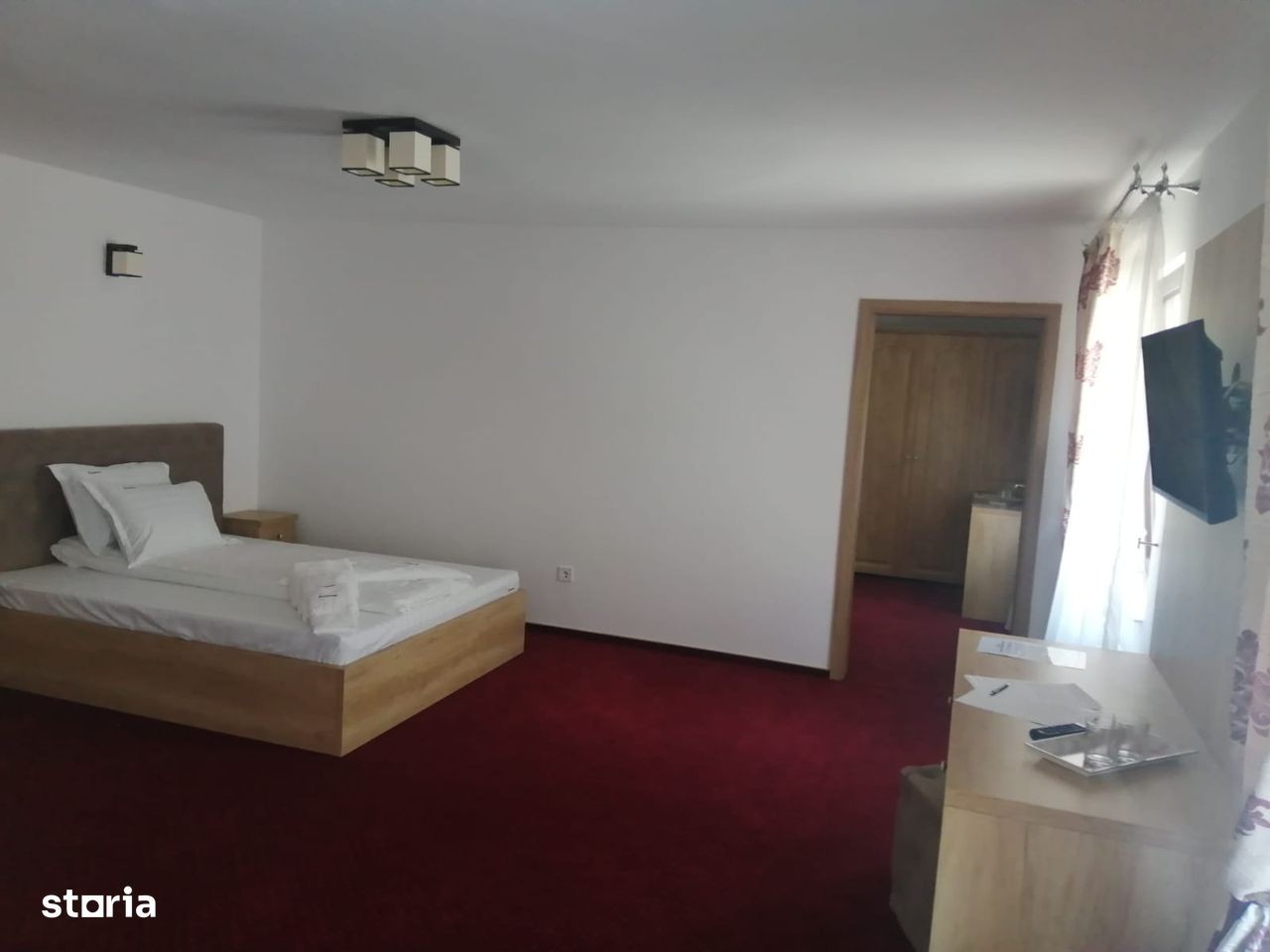 Acest spațiu comercial de vânzare /inchiriere este o constructie cu functie de restaurant si spatii de cazare cu regim de inaltime subsol+parter+etaj +mansarda si are o suprafață de 2109 mp construiti. Construcția, finalizată în 2005, este gata de utilizare. Beneficiezi de acces asfaltat, încălzire și toate utilitățile necesare: apă, gaz, internet și cablu TV.