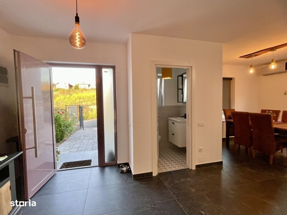Casa tip duplex PET FRIENDLY de inchiriat in Borhanci Suprafață utilă: 120 mp Teren: 240 mp Locuri parcare: 2 Se inchiriaza mobilată și utilată complet Încălzire: centrală pe gaz cu pardoseală încălzită Pet-friendly, climatizare, supraveghere video - Compartimentare - Parter:Bucătărie open space cu dining, complet mobilată și utilată (cuptor, plită, hotă, mașină de spălat vase, combină frigorifică, cuptor microunde)m Living cu acces la terasă și grădină, Baie de serviciu Etaj: 2 dormitoare luminoase, Baie cu duș Etaj retras: Dormitor matrimonial cu baie proprie (cadă) și balcon privat Terasa: Terasă acoperită de 30 mp cu panoramă asupra orașului Exterior și facilități: Curte amenajată cu gazon și plante decorative Acces rapid la transport public (500 m), școli, grădinițe, magazine și supermarketuri Chirie: 1.450 EUR/lună + garanție 1 lună Dacă vrei să afli detalii mai concrete despre această proprietate, sună la numărul de telefon afișat: