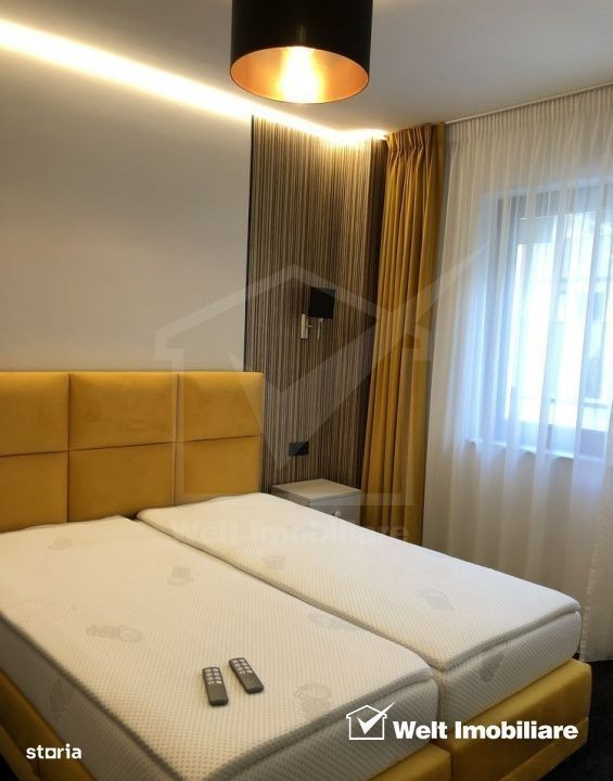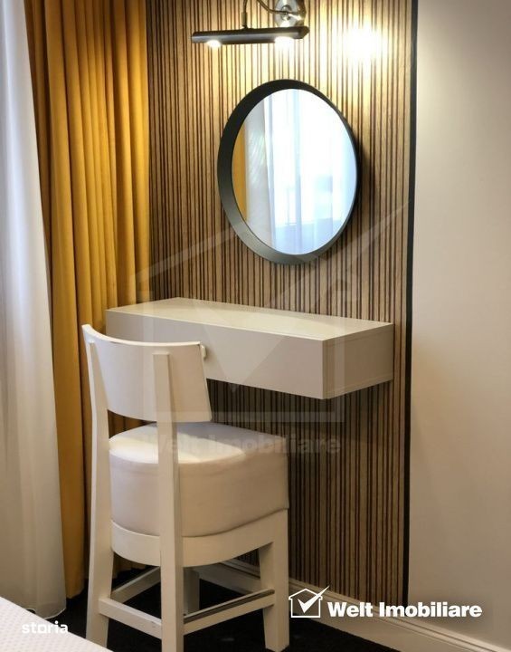 Welt Imobiliare va propune spre inchiriere un apartament cu 2 camere decomandate, situat in Europa. Locuinta este amplasata la parterul unui imobil nou, dispus pe 4 etaje, avand suprafata utila de aproximativ 54mp + terasa de 8mp si parcare subterana. Compartimentarea este eficient gandita si cuprinde: - 1 living tip open space cu bucatarie, loc de luat masa, canapea si dressing - 1 dormitor, dotat cu pat matrimonial reglabil electric cu telecomanda, zona de machiaj si dressing - 1 baie cu dus walk-in Imobilul beneficiaza de dotari premium: incalzire in pardoseala, aer conditionat, iluminare LED, semineu, TV, birou, electrocasnice de top (inclusiv masina de spalat vase si rufe), sistem de alarma, centrala proprie cu termostate. Contactati-ne pentru mai multe informatii sau pentru a programa o vizionare!
