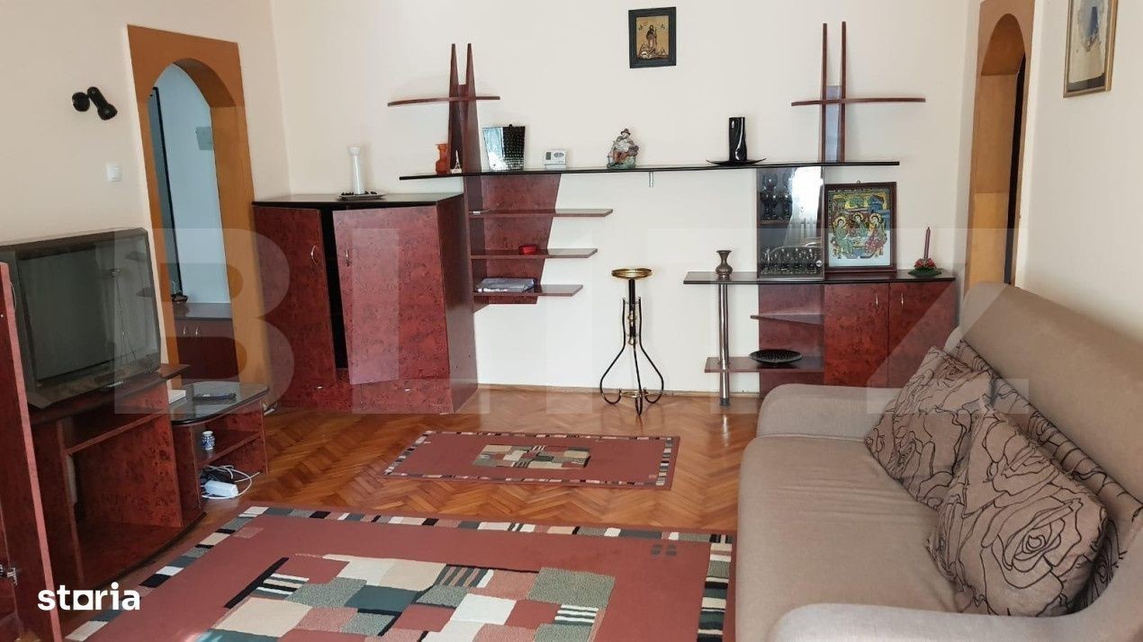 Blitz iti propune spre inchiriat un apartament cu 2 camere, semidecomandat, in zona Iulius Mall. Apartamentul este pozitionat la parterul unui imobil cu 4 etaje si este compartimentat astfel: living, dormitor ( pat matrimonial), bucatarie (mobilier nou) baie si hol. Apartamentul se oferta spre inchiriat mobilat si utilat, detine centrala termica proprie. Iti spunem la dispozitie 1 loc de parcare exterior. Te astept la vizionare!