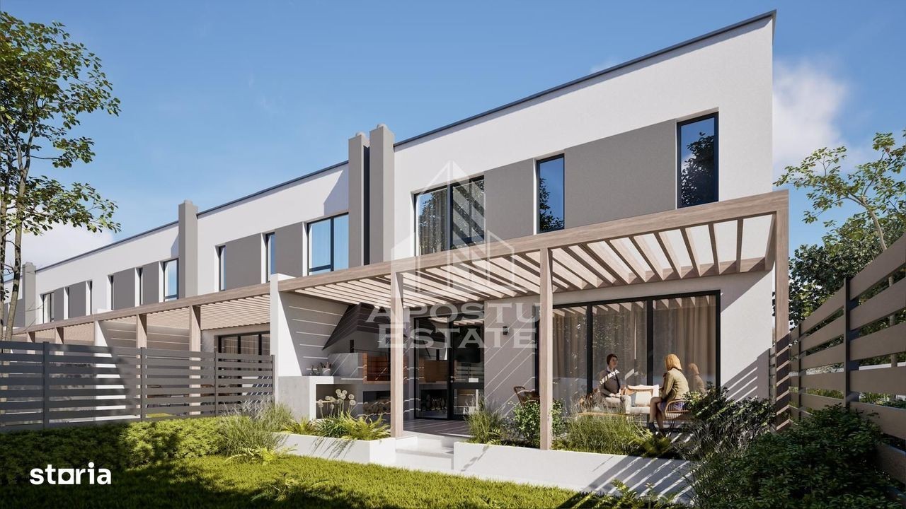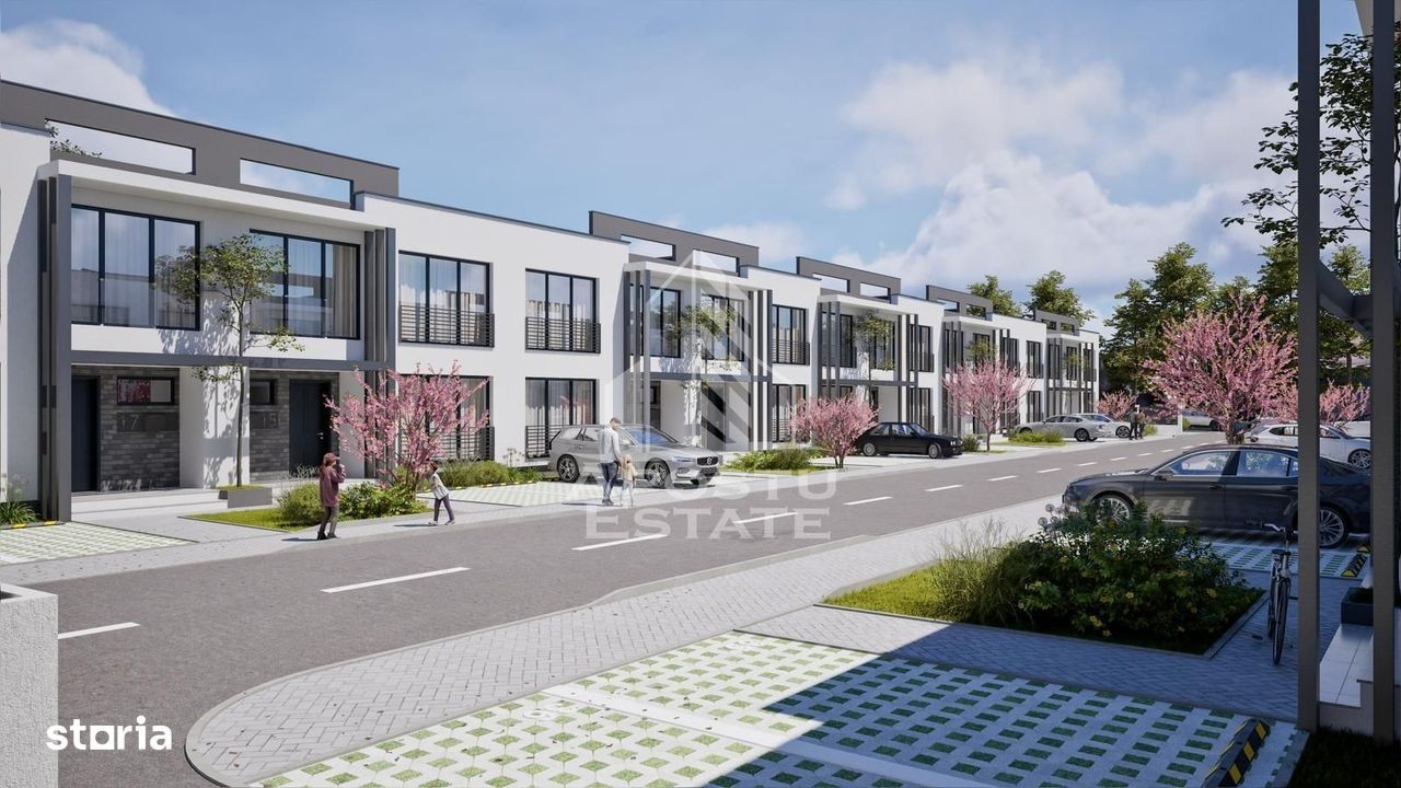 Apostu Estate vă pune la dispoziție un ansamblu exclusivist de 18 case moderne, proiectate pentru confort, eficiență și eleganță. Un proiect premium, ideal pentru familiile care își doresc un cămin într-o zonă liniștită, bine structurată și construită la standarde înalte. Prețuri: • 199.000 € la cheie - cu finisaje de lux incluse • 190.000 € varianta la alb (10.000 € diferență față de varianta finalizată) Caracteristici principale: • 118 mp suprafață utilă + terasă • Tip duplex, dar fără perete comun (case lipite, dar complet independente fonic și structural) • 2 locuri de parcare incluse • Curte privată și spațiu verde • Panouri solare pentru eficiență energetică • Stradă privată • Acoperiș hidroizolat • Ferestre cu tehnologie nouă, 4 foi de sticlă, pentru izolare superioară • Finisaje premium și materiale de calitate Termen de predare: Casele vor fi gata la cheie în toamna anului viitor, estimat august - septembrie. Un proiect modern, luminos, eficient energetic și realizat cu atenție la detalii, perfect pentru cei care apreciază calitatea și durabilitatea. Pentru detalii suplimentare și programări la vizionare, contactați Apostu Estate.