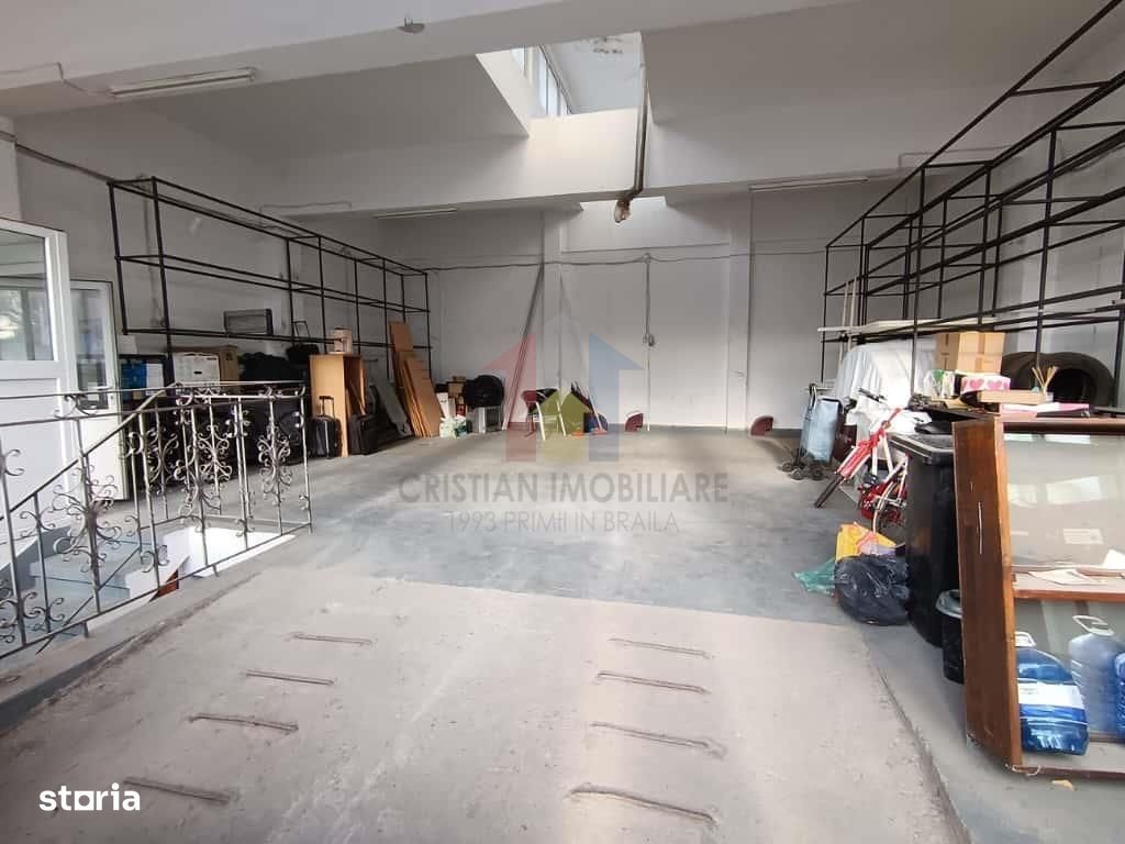 Hala 190 mp, D+P din Boltari intre Garii si C.Galati * Demisol in suprafata de 90 mp - 1 birou, 2 spatii si baie * Parter - 100 mp * Deschidere 10 m * Constructie pe cadre din boltari * Utilitati: apa, curent 3,80W, canalizare * Boiler electric Cristian Imobiliare - din 1993 Primii in Braila CRS7922 &11