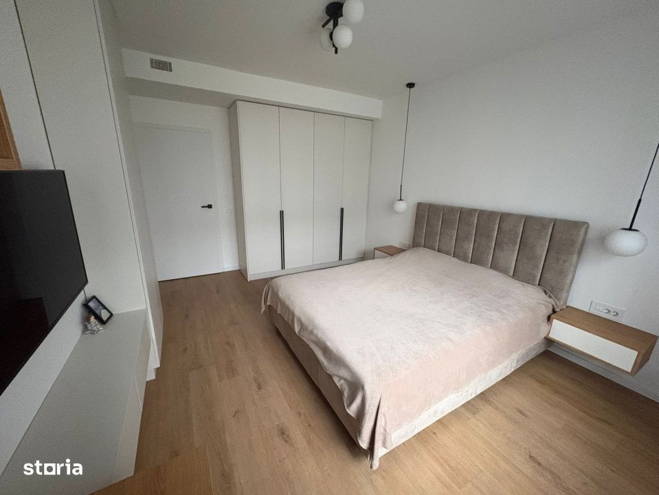 PF ofer spre inchiriere apartament cu 2 camere, 60 mp + balcon, situat in complexul Liberty Residential, bloc nou, zona semi-centrala, aproape de parc. Apartamentul dispune de finisaje si utilari premium: masina de spalat, uscator de rufe, masina de spalat vase, aer conditionat, incalzire in pardoseala etc. Loc de parcare subteran inclus. Disponibil incepand cu 20 decembrie.