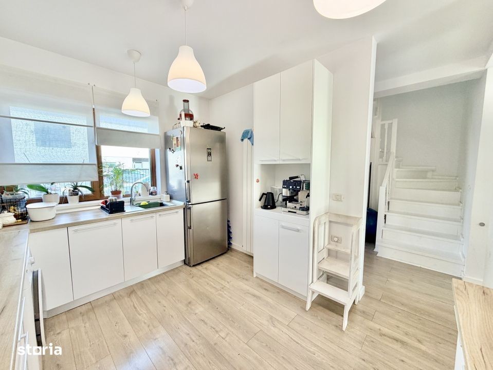 Evand Homes va prezinta spre vanzare un duplex Parter + Etaj cu 4 camere si 2 bai, situat in localitatea Mosnita Noua, Carter Serena 1, aproape de Mcity, de scoala si cresa. Proprietatea are o suprafata utila de 98 mp si un teren de 300 mp, construita in anul 2019, pe structura de beton si zidarie din caramida portanta. Aceasta este situata intr-o zona foarte linistita si la doar 4 minute de complexul Mcity si la 2 minute de Scoala, Cresa si Gradinita. Compartimentare: - Parter: hol, living, bucatarie, baie, spatiu de depozitare, terasa acoperita; - Etaj: 3 dormitoare (dormitor matrimonial cu dressing), baie, hol; - Pod de depozitare. Dotari: - confort termic cu centrala proprie cu incalzire prin calorifere; - tamplarie PVC; - mobilat si utilat; - curte amenajata cu gazon, plante ornamentale si sistem de irigatii; - sistem de climatizare; - casuta depozitare unelte; - piscina. Utilitati: apa, gaz, curent, canalizare, fibra optica, drum asfaltat si iluminat stradal. Pret: 187.500€ - Comision 0%! Pentru detalii și programarea unei vizionari, contactati-ne la