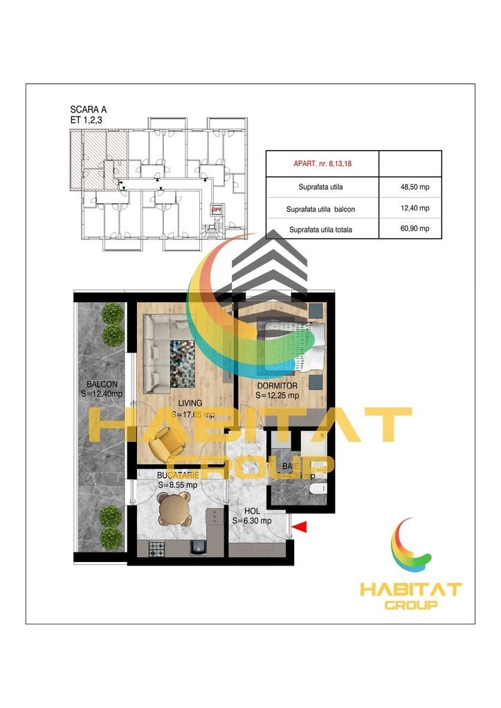 Apartament modern cu 2 camere, decomandat, bucătărie inchisa, 1 baie și balcon generos de 12.4 mp. Situat la etajul 2 din 4, acest apartament de 60.9 mp (48.5 mp utili) este alegerea ideală pentru confort și relaxare. Dotări premium incluse: Parchet laminat elegant Gresie și faianță de calitate Tâmplărie PVC cu geam tripan Ușă metalică securizată pentru siguranță Baie complet echipată Centrală proprie în condensație de 24 kW și încălzire în pardoseală - confort garantat Se predă „la cheie”, branșat la toate utilitățile (Enel, Engie și Apanova). Finalizare proiect: 2026 - Rezervă-ți acum noul tău cămin! Prețuri: 90.900 euro + TVA - avans 90% la antecontract 94.400 euro + TVA - avans 50% la antecontract 97.900 euro + TVA - avans 15% la antecontract Pozele sunt cu titlu de prezentare. Locație: Strada Poștașului nr. 29, Sector 3 Waze: Habitat Group Estate Program vizionări: Luni - Vineri: 10:00 - 18:00 Sâmbătă: 10:00 - 14:00 Contact: Daniel Manea -